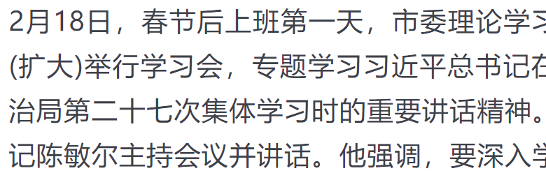 2月18日,春節后上班第一天,市委理論學習中心組(擴大)舉行學習會,專題學習習近平總書記在中央政治局第二十七次集體學習時的重要講話精神。市委書記陳敏爾主持會議并講話。