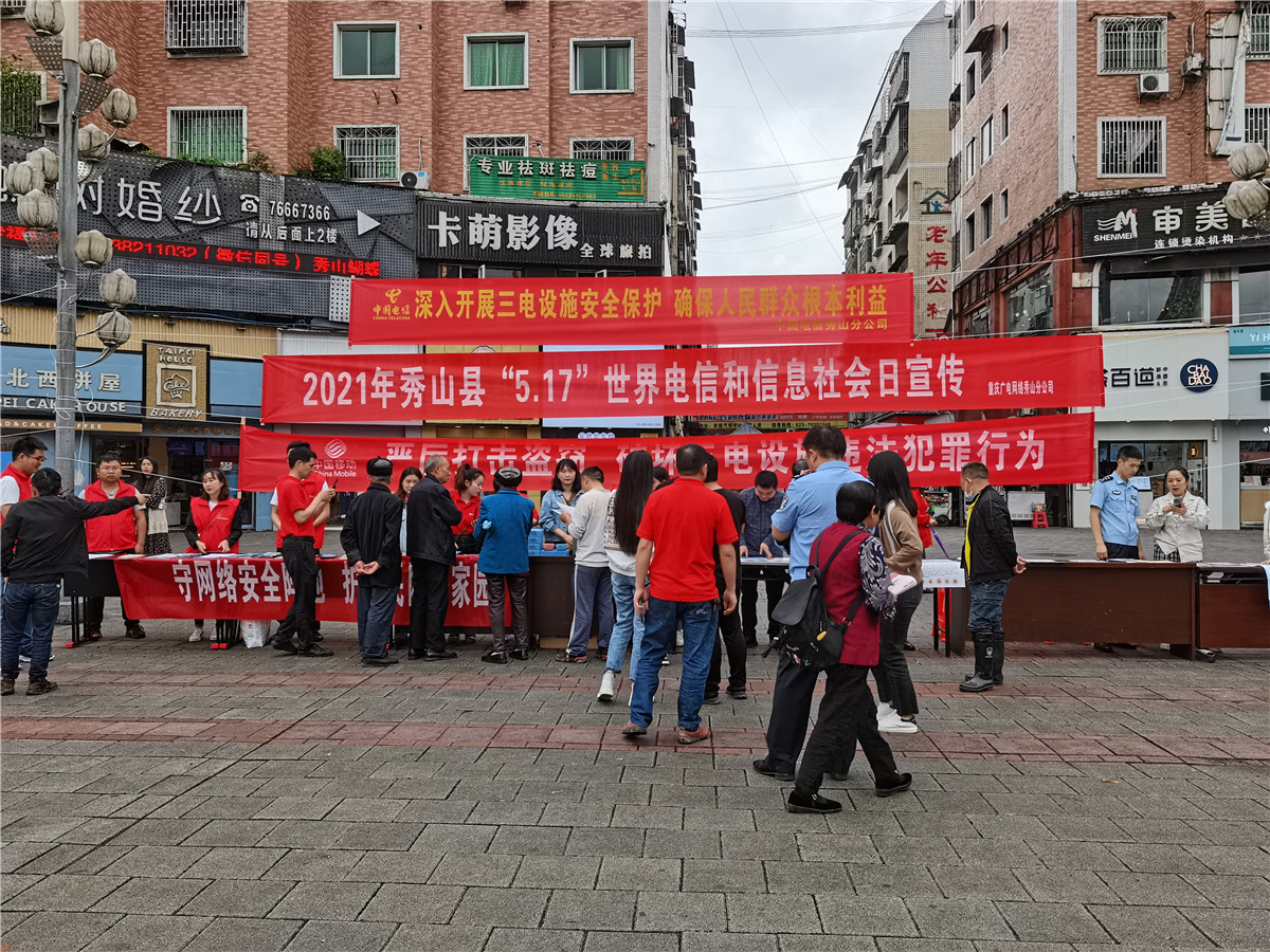 秀山網訊 5月17日是世界電信和信息社會日。為深入開展電力電信廣播電視設施安全保護工作,確保 “三電”設施安全運行,5月17日下午,縣公安局三電辦聯(lián)合縣文化旅游委、縣委政法委、市場監(jiān)管局等單位在花燈廣場開展2021年電力電信廣播電視設施安全保護宣傳活動。活動中,工…