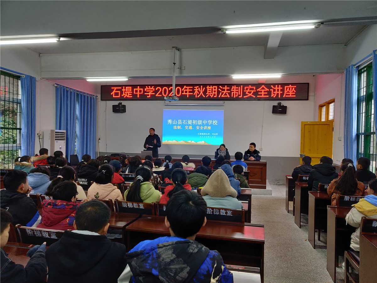 秀山網訊 為增強青少年法治觀念,積極營造學法知法守法用法氛圍,扎實推進平安和諧校園建設,12月17日,石堤司法所、石堤派出所工作人員來到石堤中學開展以法治、交通、安全為主題的宣講活動。講座上,工作人員從禁毒知識與交通安全知識兩方面入手,運用圖片與文字,以互…