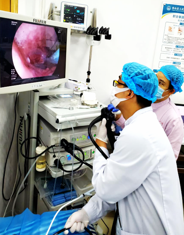 秀山網訊 8月6日,縣人民醫院消化內科成功為一名高齡晚期食管癌患者實施食管支架置入術,術后患者食管支架固定在位,食管病變部位管腔通暢,內鏡鏡身可自由通過,患者未訴不適,擬擇期進食少量流質食物。成功開展內鏡下食管支架置入術。宋玲莉 攝患者楊某,男,75歲,因進食…