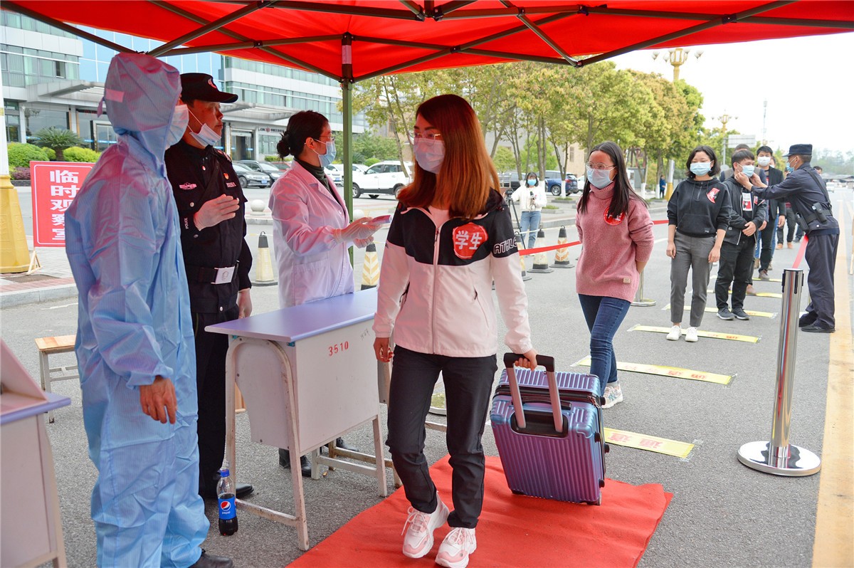 秀山網(wǎng)訊 為做好新冠肺炎疫情防控期間的復(fù)學(xué)工作,提升全校師生的防疫意識,保障健康、安全、有序的校園生活,4月8日下午,高級中學(xué)開展了復(fù)學(xué)疫情防控大演練。學(xué)生返校。全媒體記者 魯詩勤 攝體溫檢測、噴霧消毒、專用隔離區(qū)……這是4月8日下午,高級中學(xué)開學(xué)防疫實戰(zhàn)演練的場…