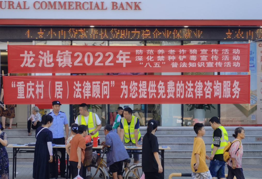 8月11日,龍池鎮平安辦聯合派出所、司法所在轄區內開展禁毒、反詐、“重慶村(居)法律顧問小程序”等普法宣傳活動,全方位筑牢群眾的法治安全防線。