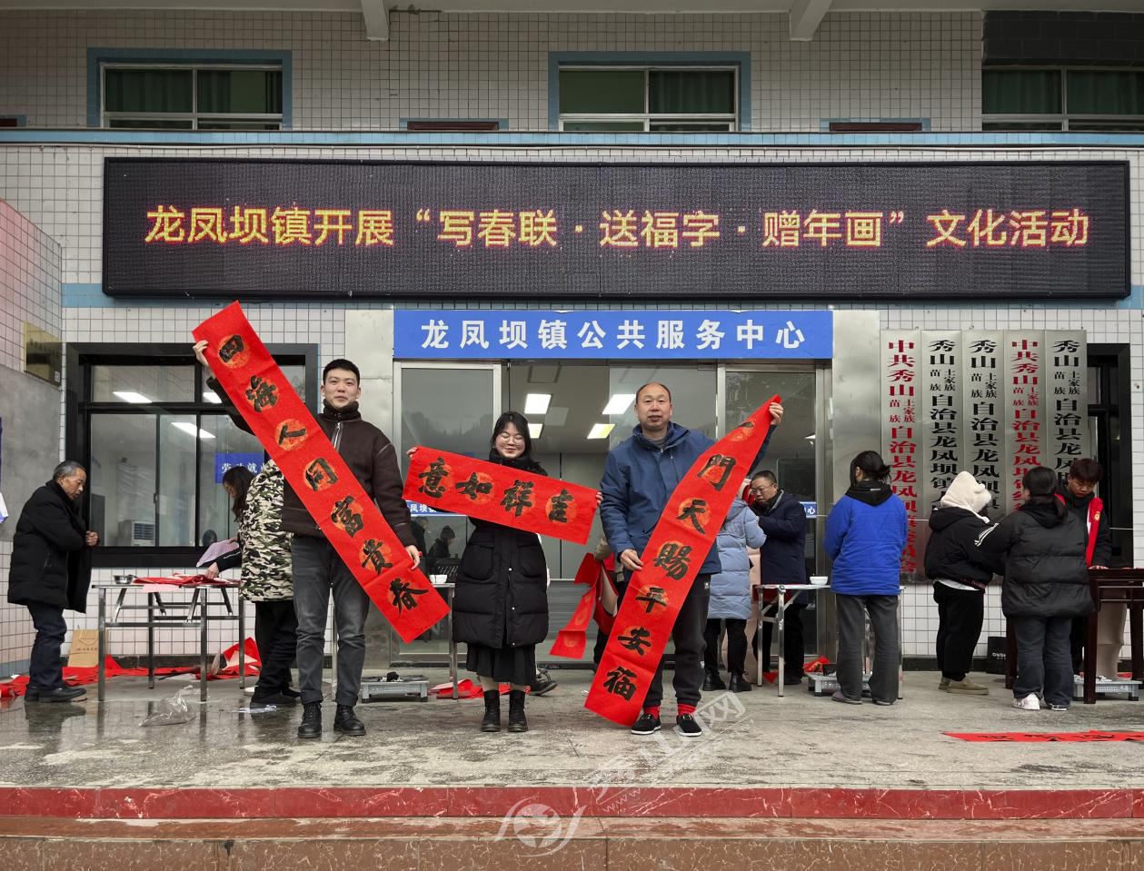 秀山網訊 2月5日,龍鳳壩鎮聯合縣文化旅游委、縣文化館、縣總工會、縣文聯、縣書法協會開展“寫春聯·送福字·贈年畫”文化活動。
