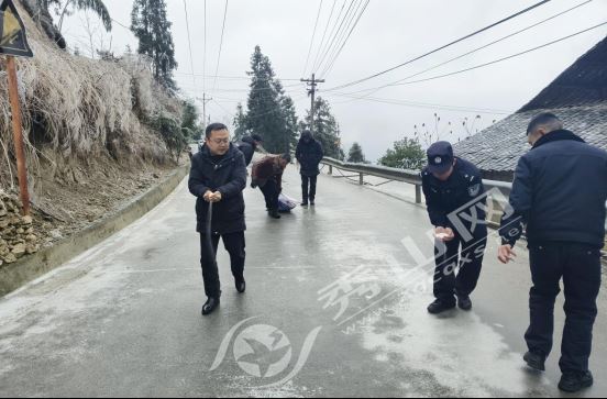 秀山網訊 2月23日,受極端天氣影響,膏田鎮茅坡烏鴉蓋公路路面結冰,群眾出行困難,車輛通行受阻。膏田鎮人民政府第一時間進行巡查,全力保障道路交通安全工作。