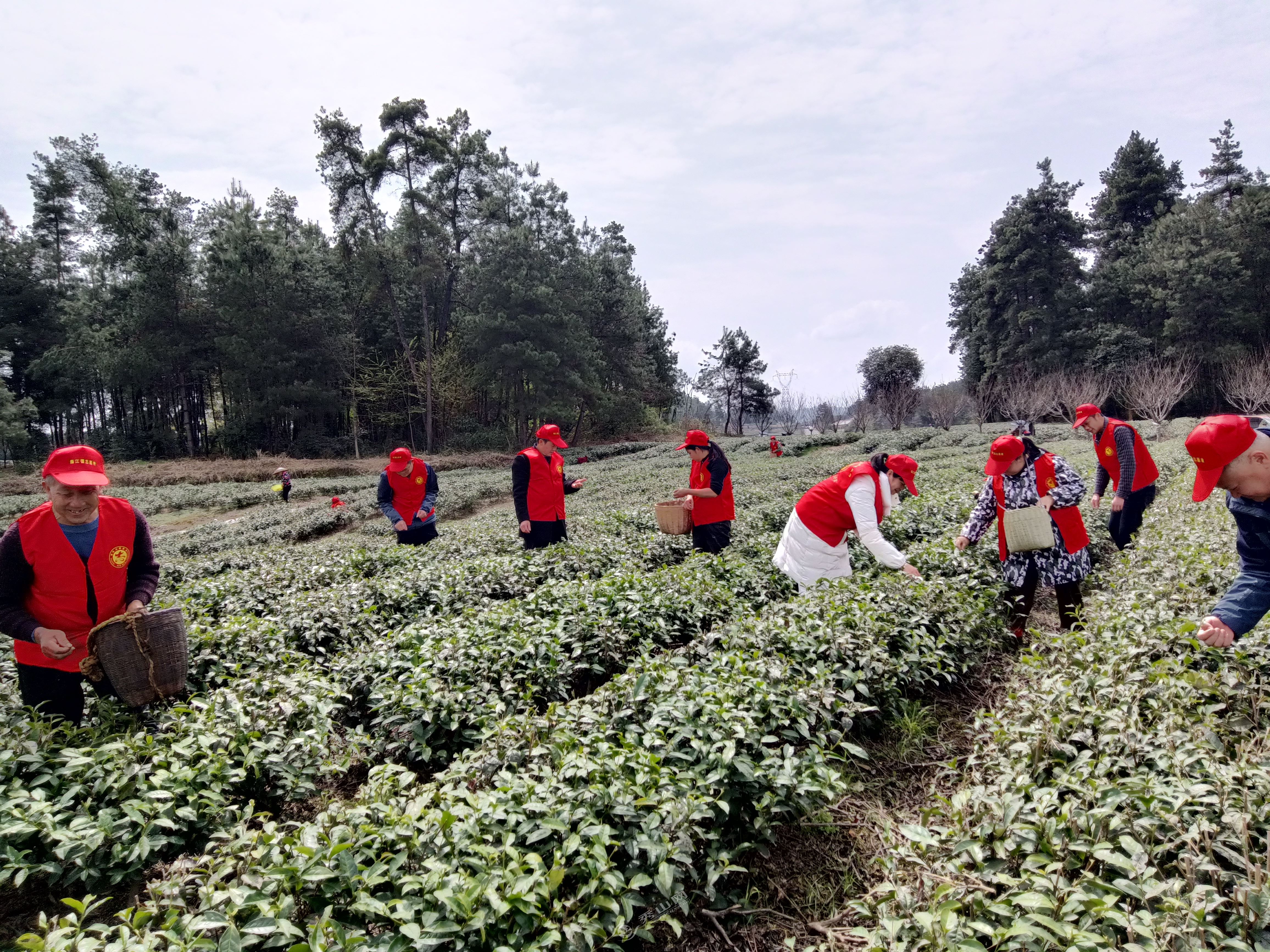 在梅江鎮(zhèn)興隆坳生態(tài)茶園基地,志愿者們彎著腰、挎著竹簍,在茶園中來回穿梭。他們動作嫻熟,指尖輕輕一捻,一片片鮮嫩的茶葉便輕輕落入簍中。在大家的共同努力下,茶園的采摘工作得以高效推進,有效緩解了基地在采茶季面臨的勞動力短缺問題。