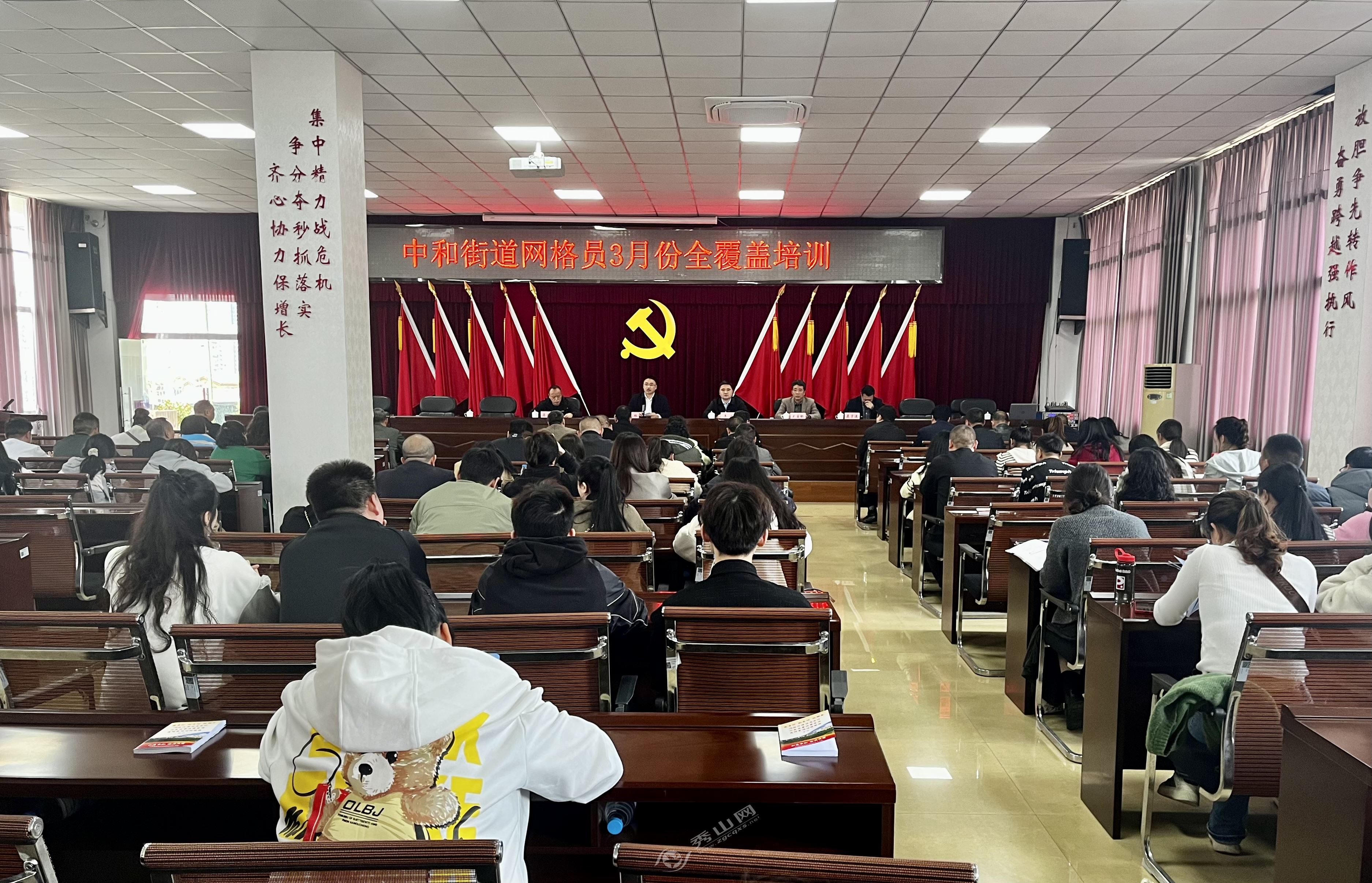 秀山網訊 3月28日,中和街道召開網格員全覆蓋培訓會,全面加強網格員業務能力,提升網格員隊伍綜合素質,進一步做好基層治理工作。轄區12個社區書記及全體專(兼)職網格員參加培訓。