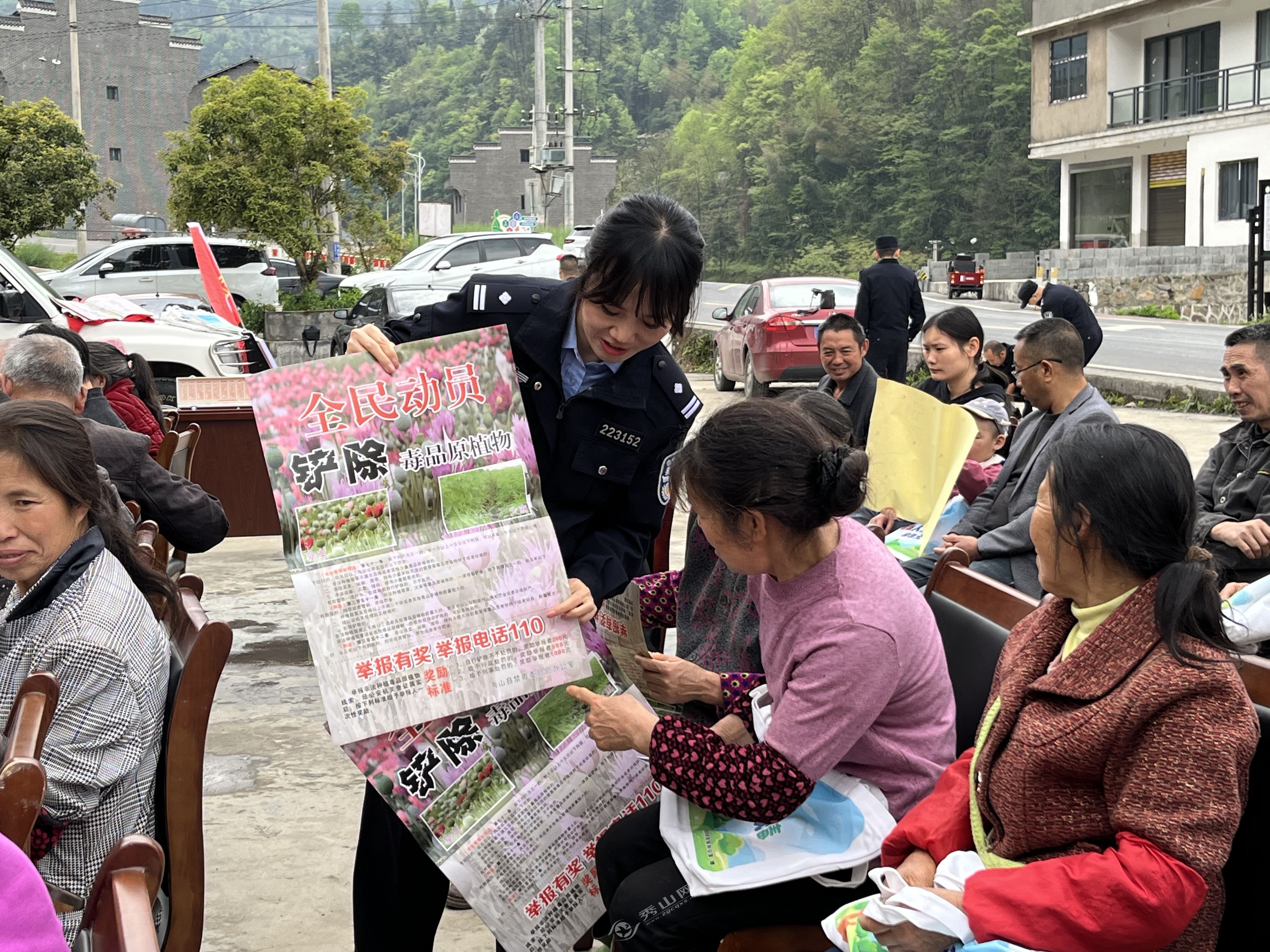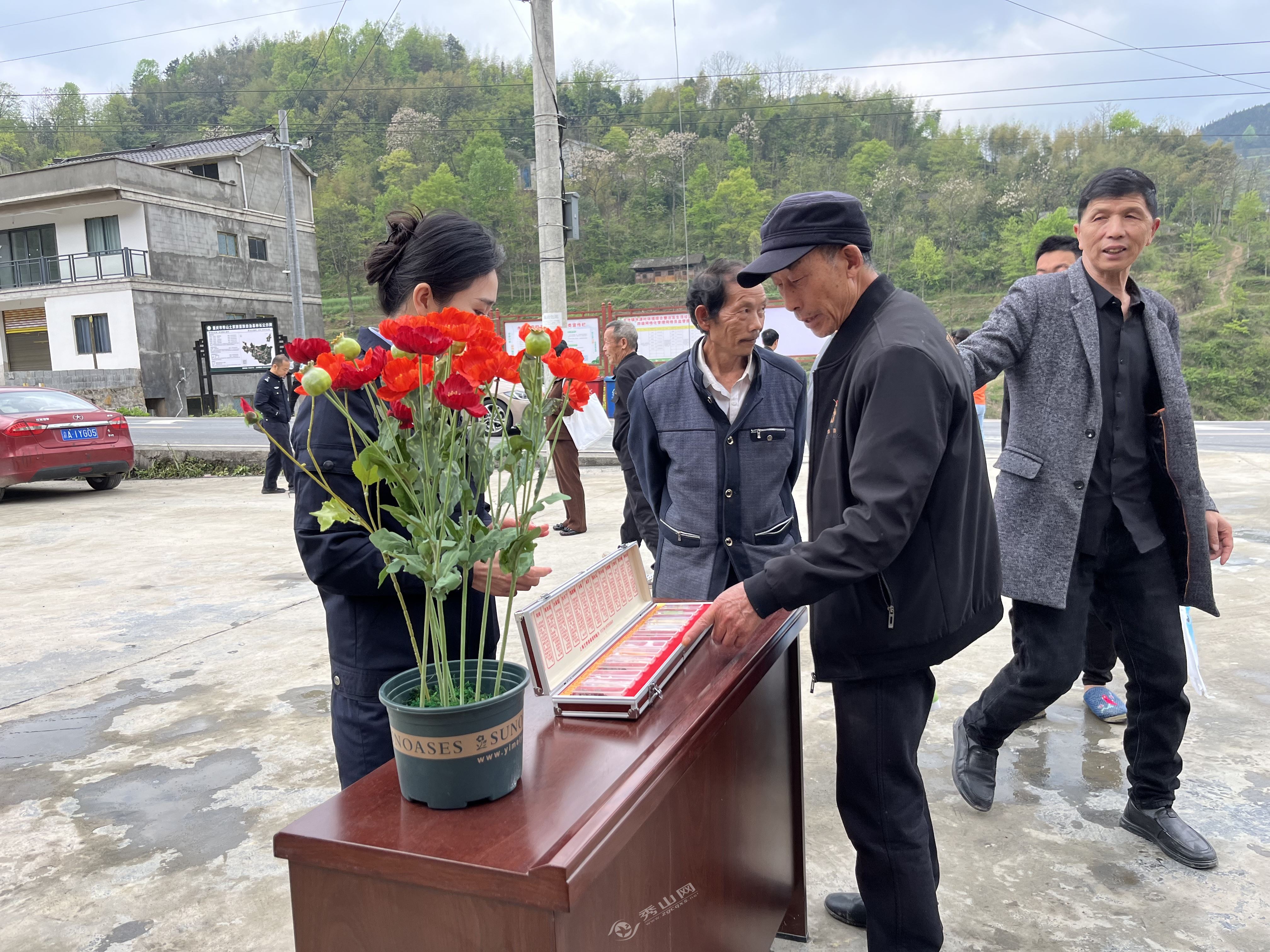 秀山網訊 4月9日上午,縣公安局禁毒大隊來到龍池鎮水源村便民服務中心,開展主題為“禁種鏟毒、人人有責”的宣傳活動,深入推進禁種鏟毒工作,確保全縣毒品原植物“零種植、零產量”。