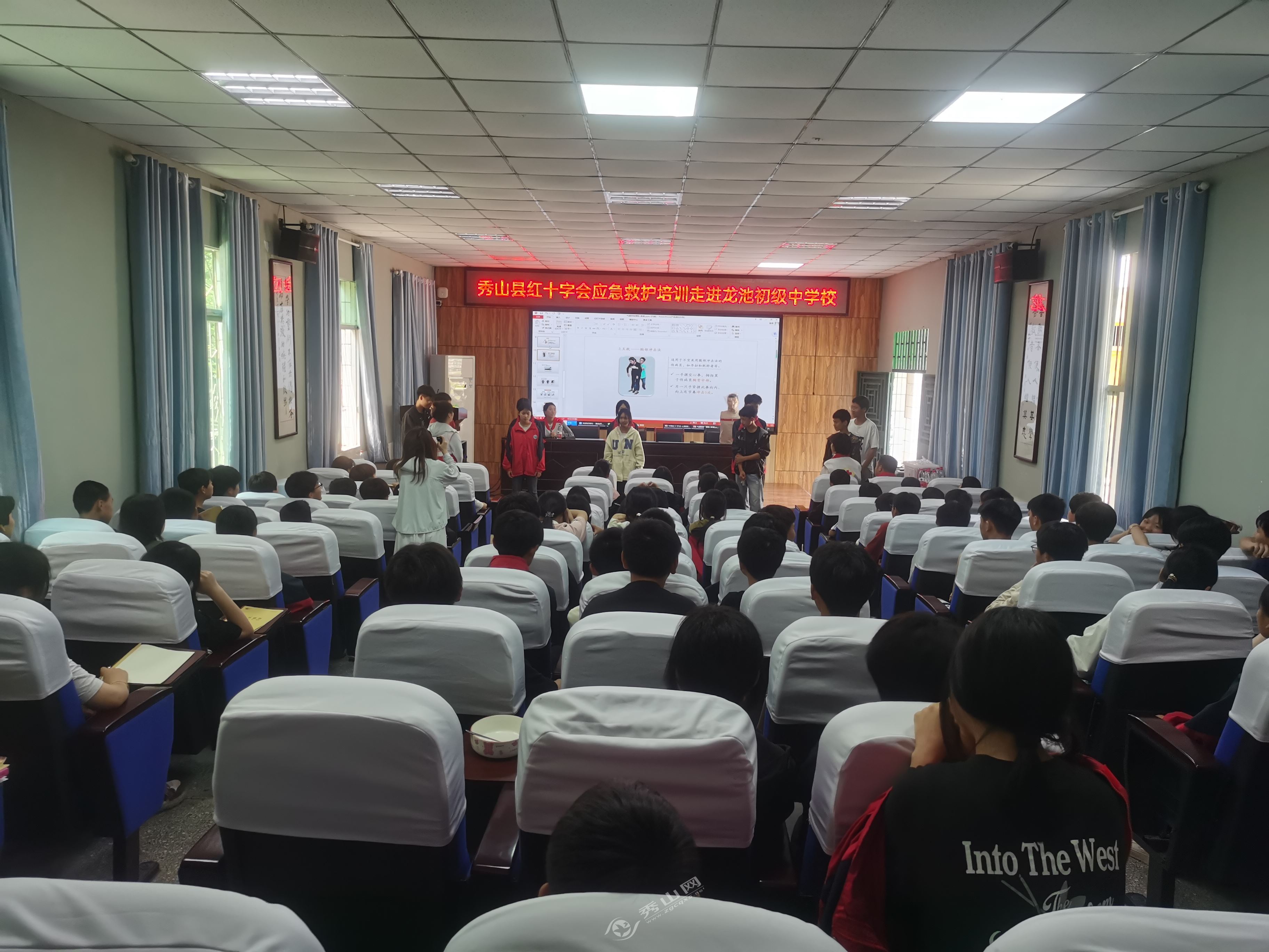 當(dāng)天下午,縣紅十字會(huì)走進(jìn)龍池初級(jí)中學(xué)校,開展“應(yīng)急救護(hù)培訓(xùn)進(jìn)校園”活動(dòng),為學(xué)生們筑起一道“生命安全之墻”。