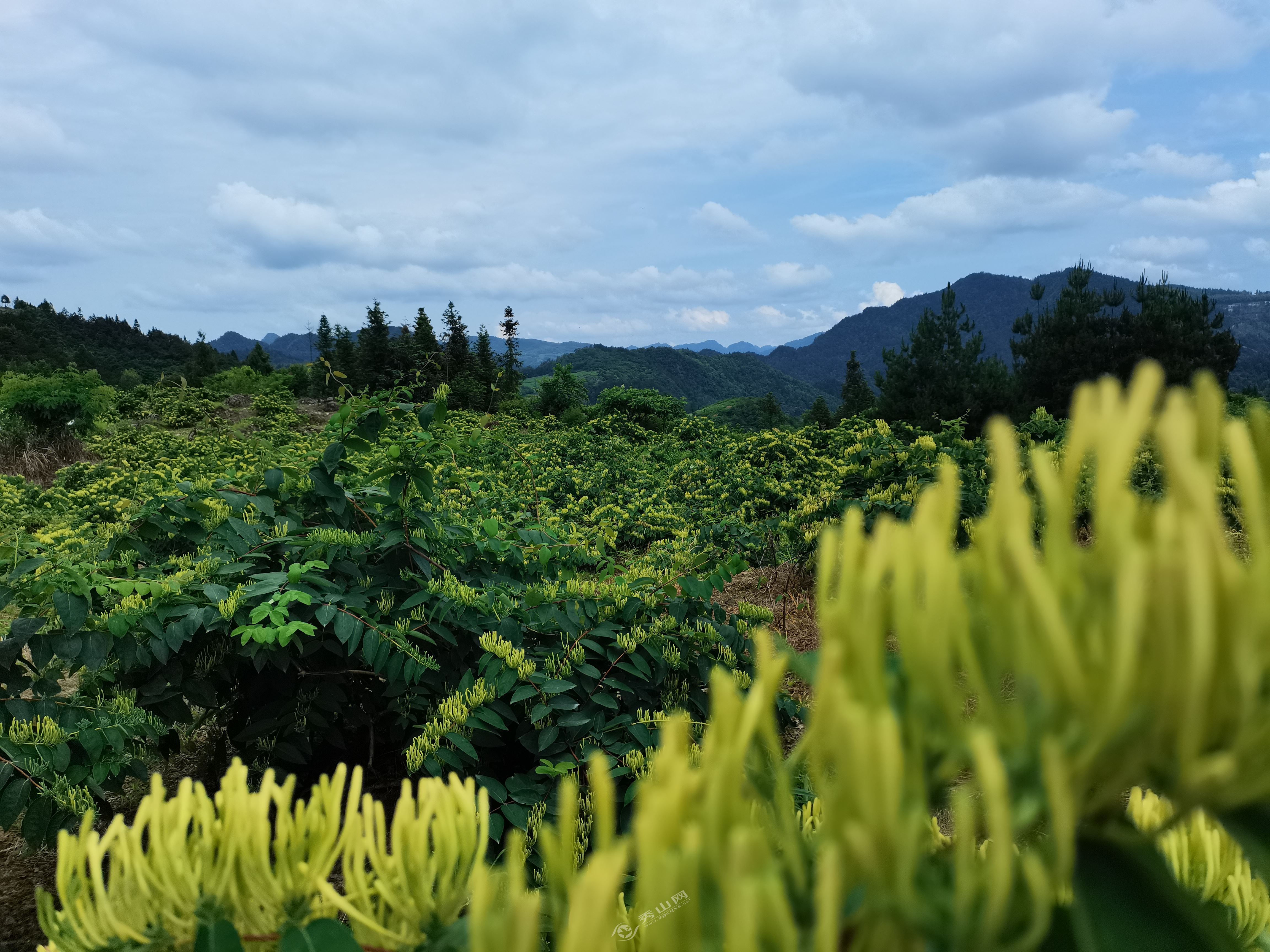 6月14日上午,記者在隘口鎮(zhèn)壩芒村銀花種植基地看到,成片的“渝蕾一號(hào)”銀花長(zhǎng)勢(shì)良好,朵朵花蕾掛滿枝頭。