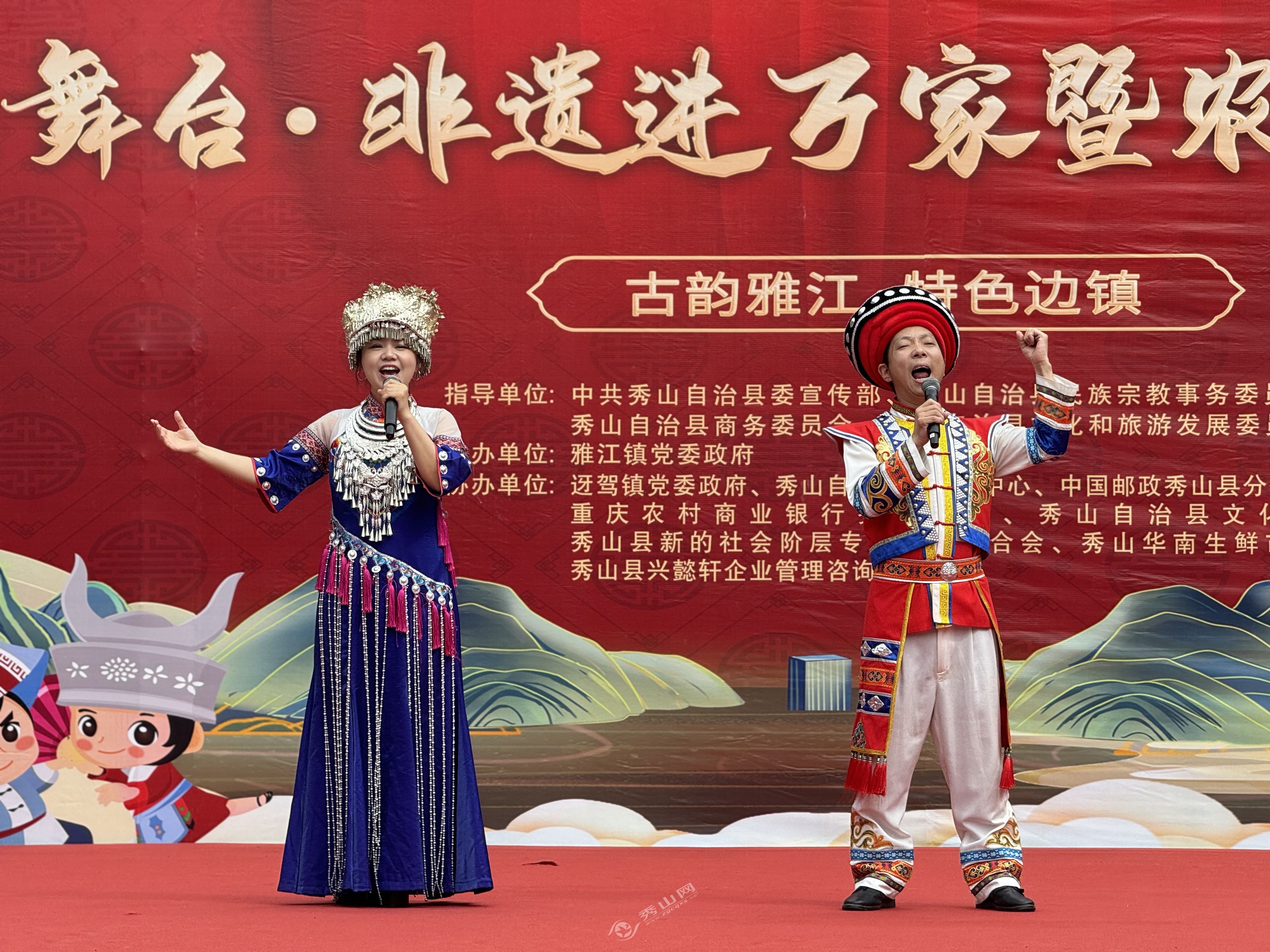 同時,渝黔邊區(qū)民族特色文藝匯演也在熱烈進行中,縣文化館、雅江鎮(zhèn)和迓駕鎮(zhèn)的表演者為觀眾帶來了精彩的演出。舞蹈《美麗中國》展現(xiàn)了祖國的大好河山與人民的幸福生活;男女對唱《請到這方水土來》表達了對家鄉(xiāng)的深深熱愛;而花燈女子群舞《俏幺妹》和苗族群舞《俏苗女》則充分展現(xiàn)了渝黔邊區(qū)獨特的民族風(fēng)情與舞蹈魅力?,F(xiàn)場掌聲與喝彩聲此起彼伏,氛圍熱烈。