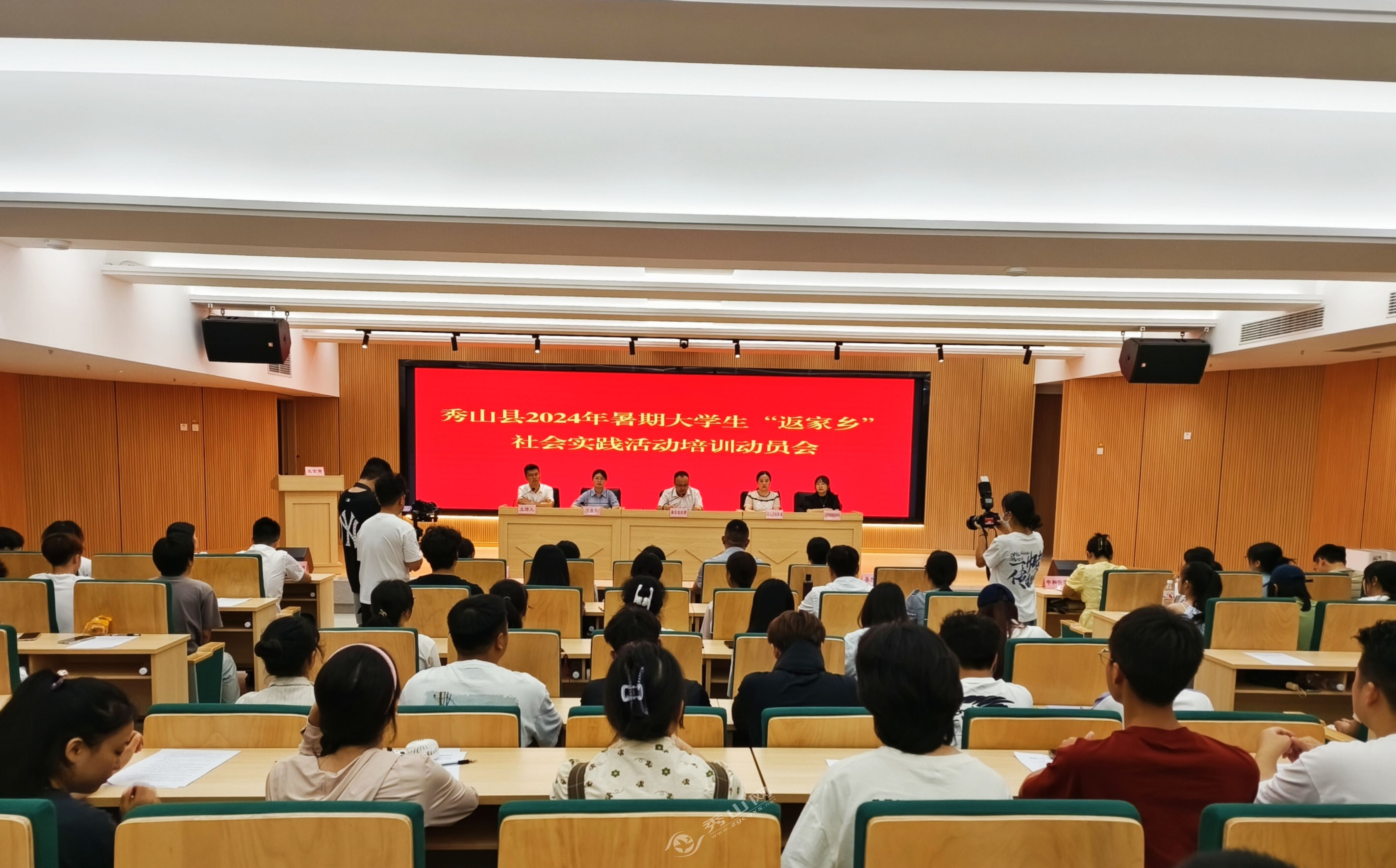 秀山網(wǎng)訊 7月15日上午,團(tuán)縣委在縣青少年活動(dòng)中心組織召開(kāi)秀山縣2024年暑期大學(xué)生“返家鄉(xiāng)”社會(huì)實(shí)踐活動(dòng)動(dòng)員培訓(xùn)會(huì)。廣泛引導(dǎo)大學(xué)生在返鄉(xiāng)參與實(shí)踐、服務(wù)家鄉(xiāng)建設(shè)發(fā)展中受教育、長(zhǎng)才干、作貢獻(xiàn)。縣委組織部、縣人力社保局、縣國(guó)資金融服務(wù)中心等相關(guān)負(fù)責(zé)人以及返鄉(xiāng)大學(xué)生等100余人參加活動(dòng)。