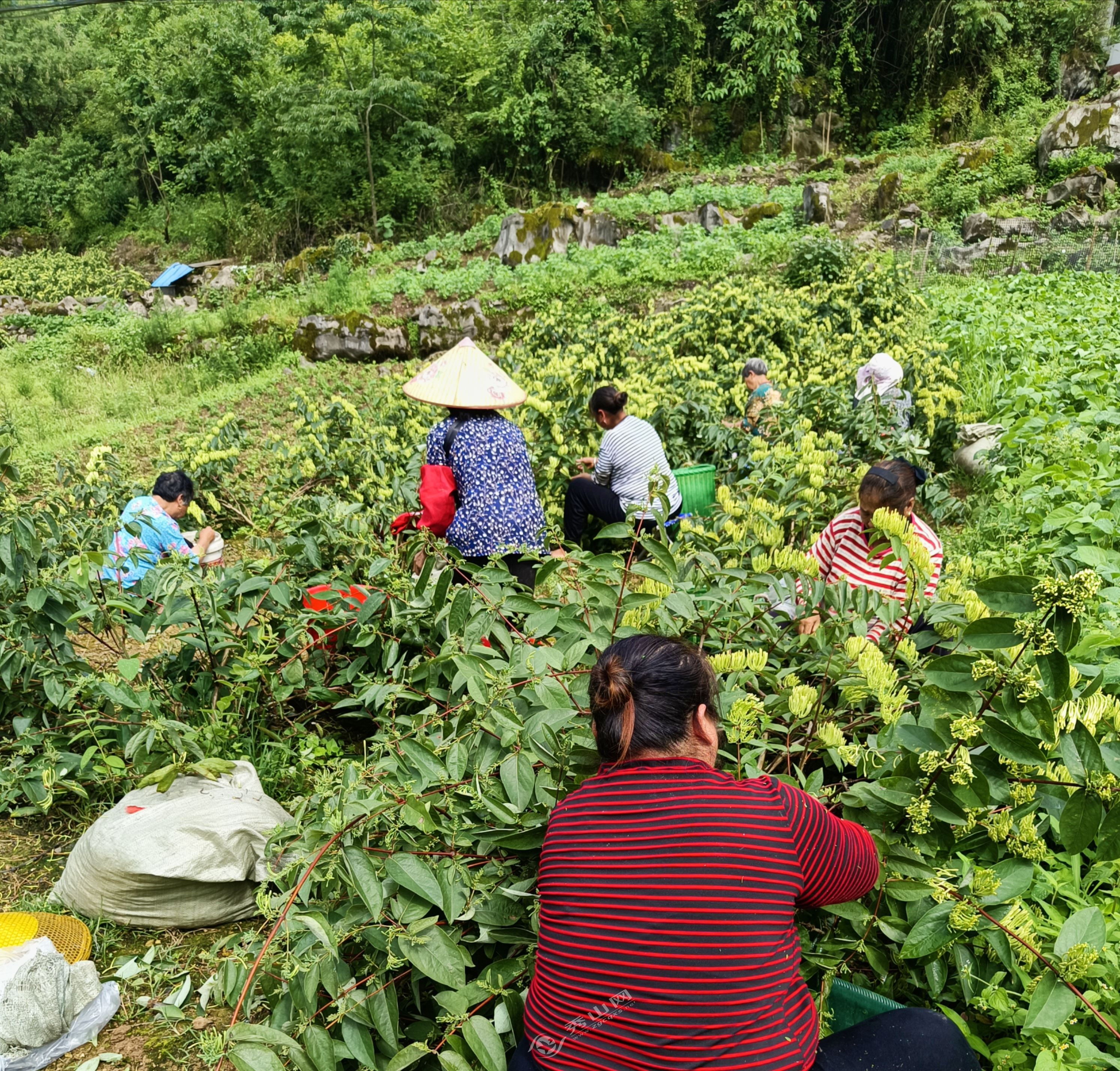 在楊正國的收購生花的種植戶中,其中兩名正是楊正國山銀花基地的管護工人:陳天強和陳天云。陳天強本身是建卡貧困戶,2023年在管護山銀花過程中既掙到了工資也學到了技術(shù),第二年便在楊正國的幫助下種植了6畝山銀花,同時,陳天云也種植的30畝山銀花,今年都喜獲豐收。最后,兩人都將山銀花賣給了楊正國。
