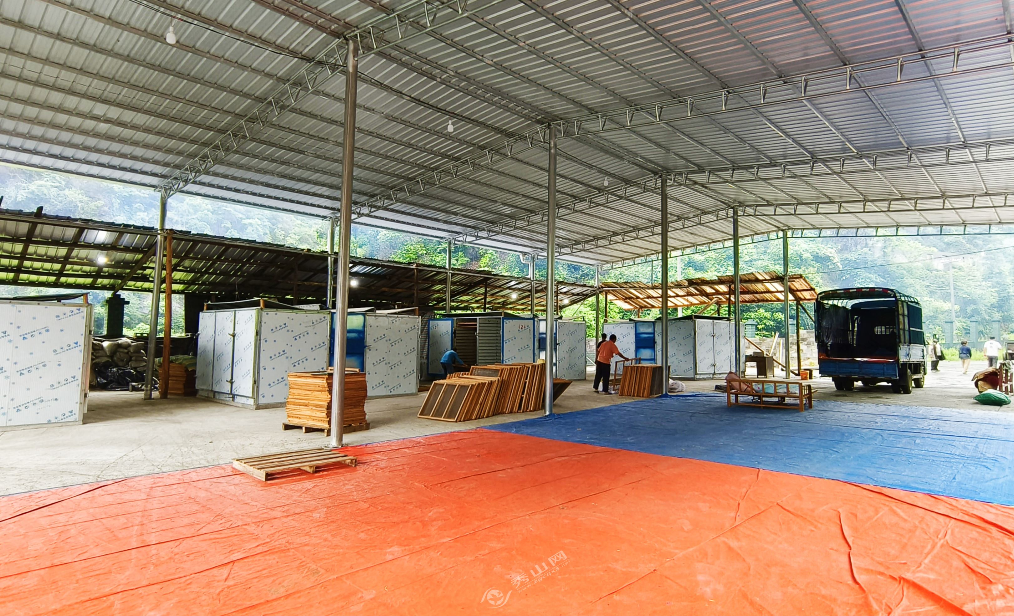 2023年10月,鎮(zhèn)黨委和村支“兩委”鼓勵、支持楊正國修建山銀花加工廠,幫忙選址,同時幫其申請到9萬元的機械補貼。最后,楊正國在山銀花基地旁修建了一個800平方米的山銀花初加工廠,購置了4臺烘烤機。
