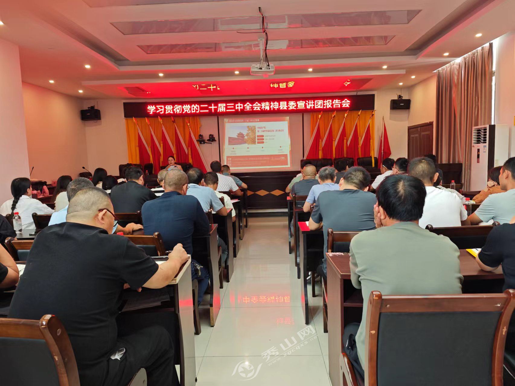 秀山網訊 9月27日,縣委宣講團成員、縣委黨校馬紅珍老師來海洋鄉宣講黨的二十屆三中全會精神,全體機關干部職工和村支部書記、副書記50余人參加。