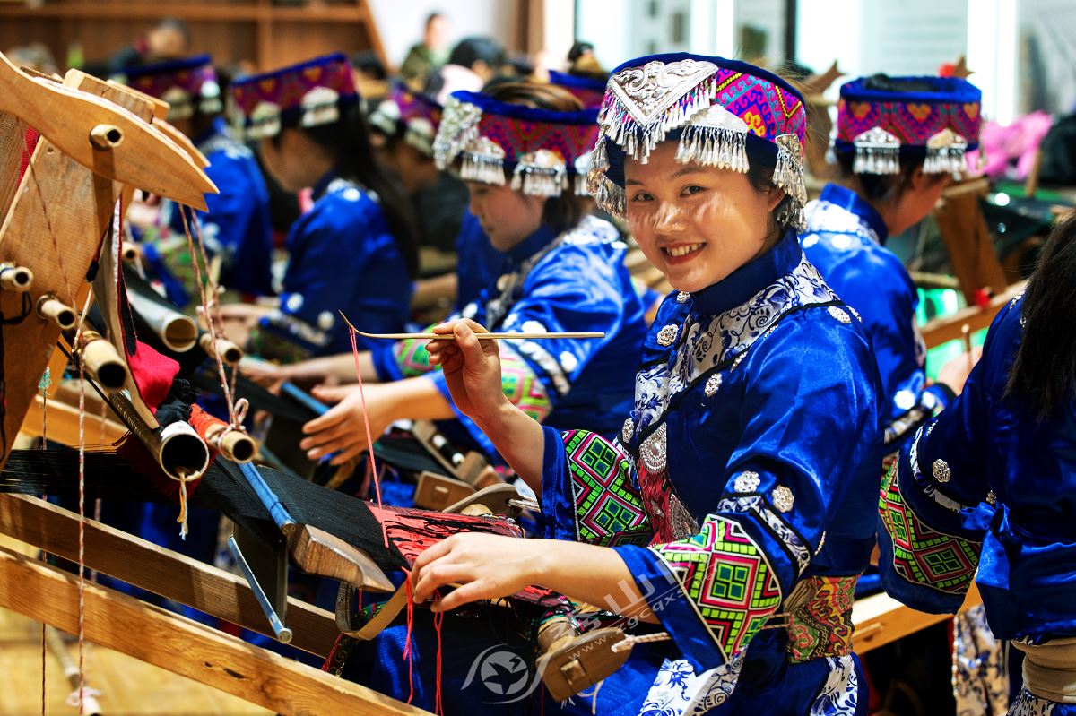 培訓(xùn)班內(nèi),“咔嗒咔嗒”的織機(jī)聲此起彼伏,女工坐在織錦架前,一雙巧手熟練地在織錦的彩線間穿梭。