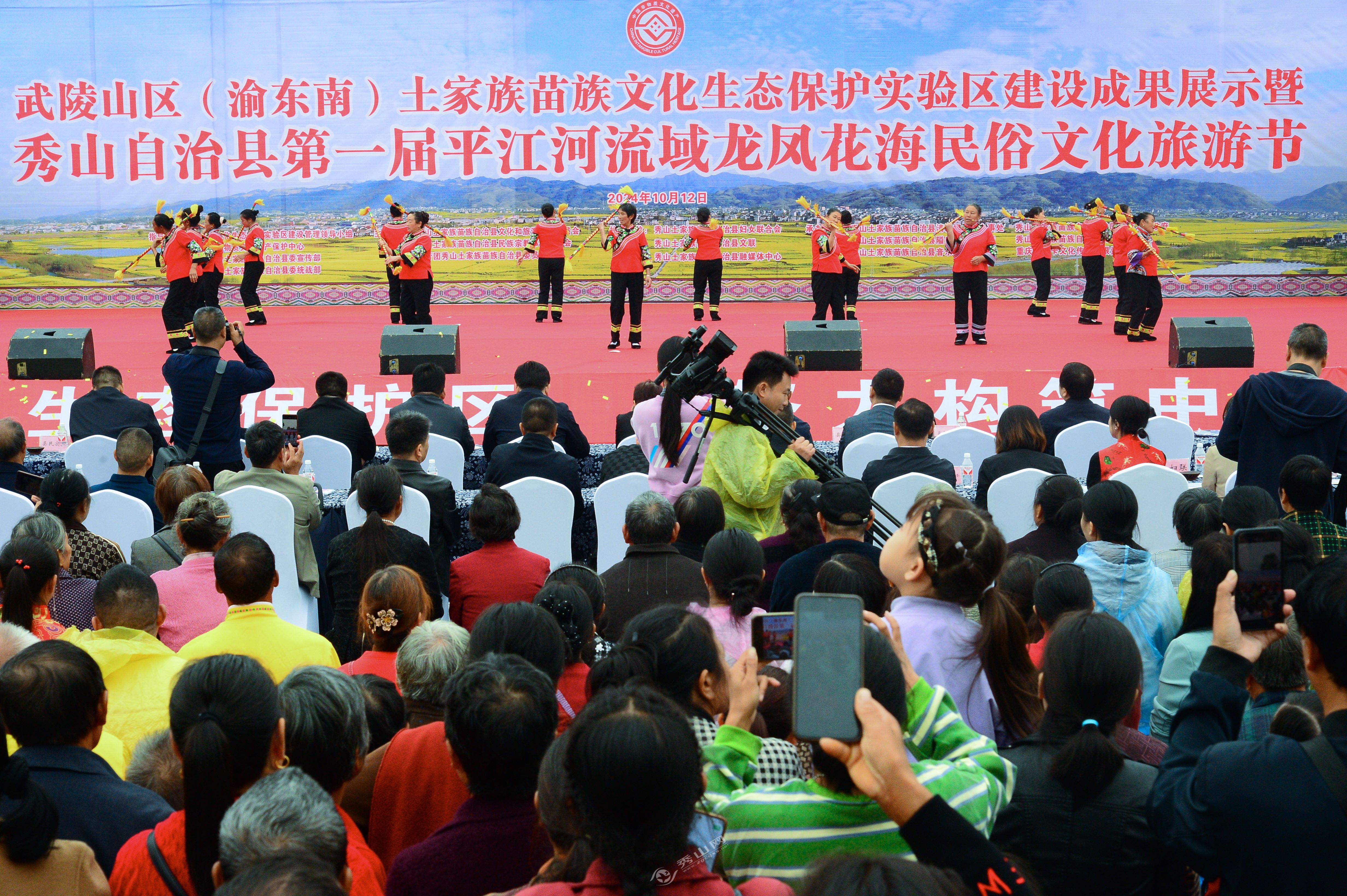 秀山網訊 10月12日,“山水同源·武陵同夢”“鑄牢共同體、中華一家親”武陵山區(渝東南)土家族苗族文化生態保護實驗區建設成果展示暨秀山自治縣第一屆平江河流域龍鳳花海民俗文化旅游節在清溪場街道舉辦。豐富多彩的民俗活動,不僅展示出民族特色,更豐富了游客的游玩體驗。