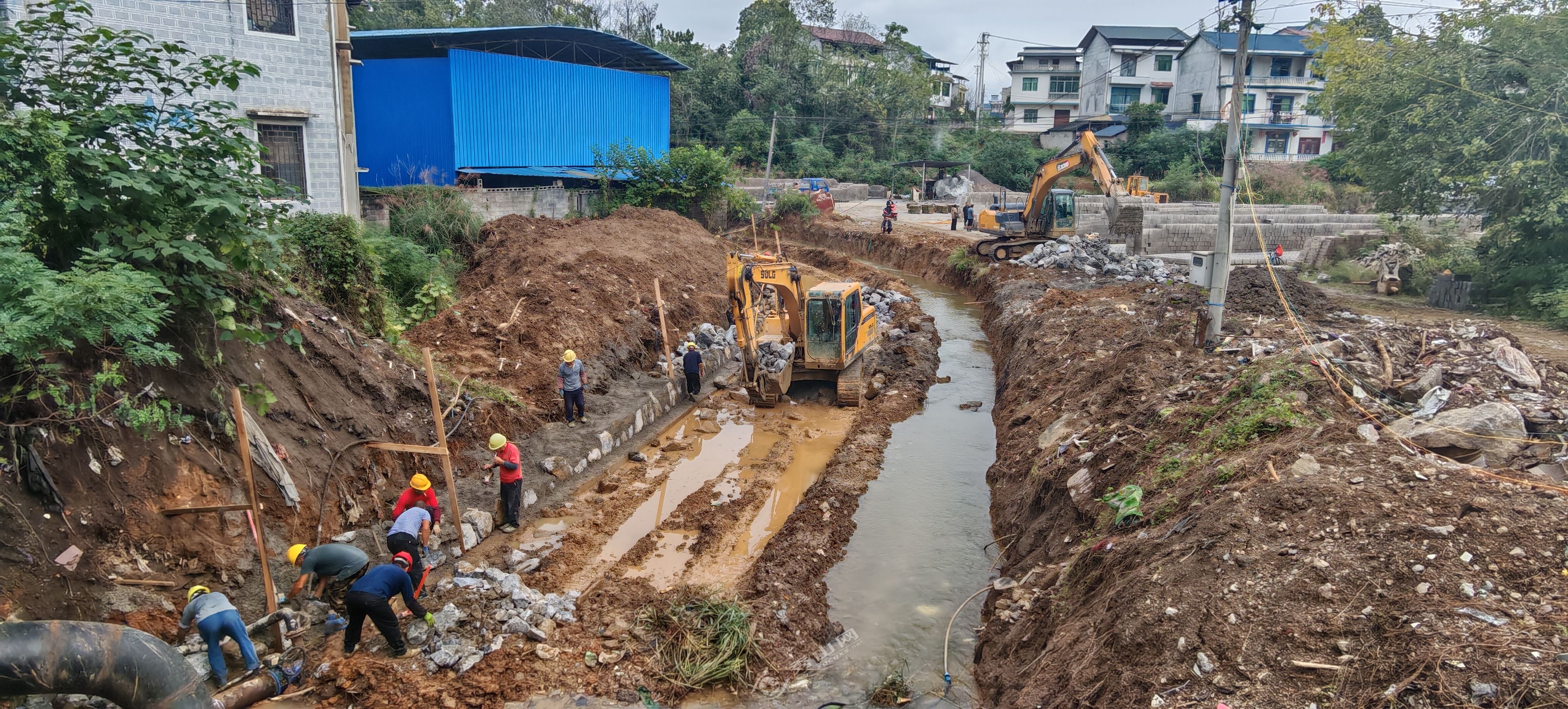 曉教山洪溝整治河道全長約4公里,貫穿平凱街道曉教村和武營社區,止于武營中橋,與梅江河相連,兼顧灌溉與防洪,分兩期實施。一期工程已實施完畢,二期工程于今年8月動工建設,按照河道寬7.6米,河堤擋墻高2.5米的施工標準,需整治河道2.2公里。配套完善排灌設施,修建跨河道人行橋交通工程。