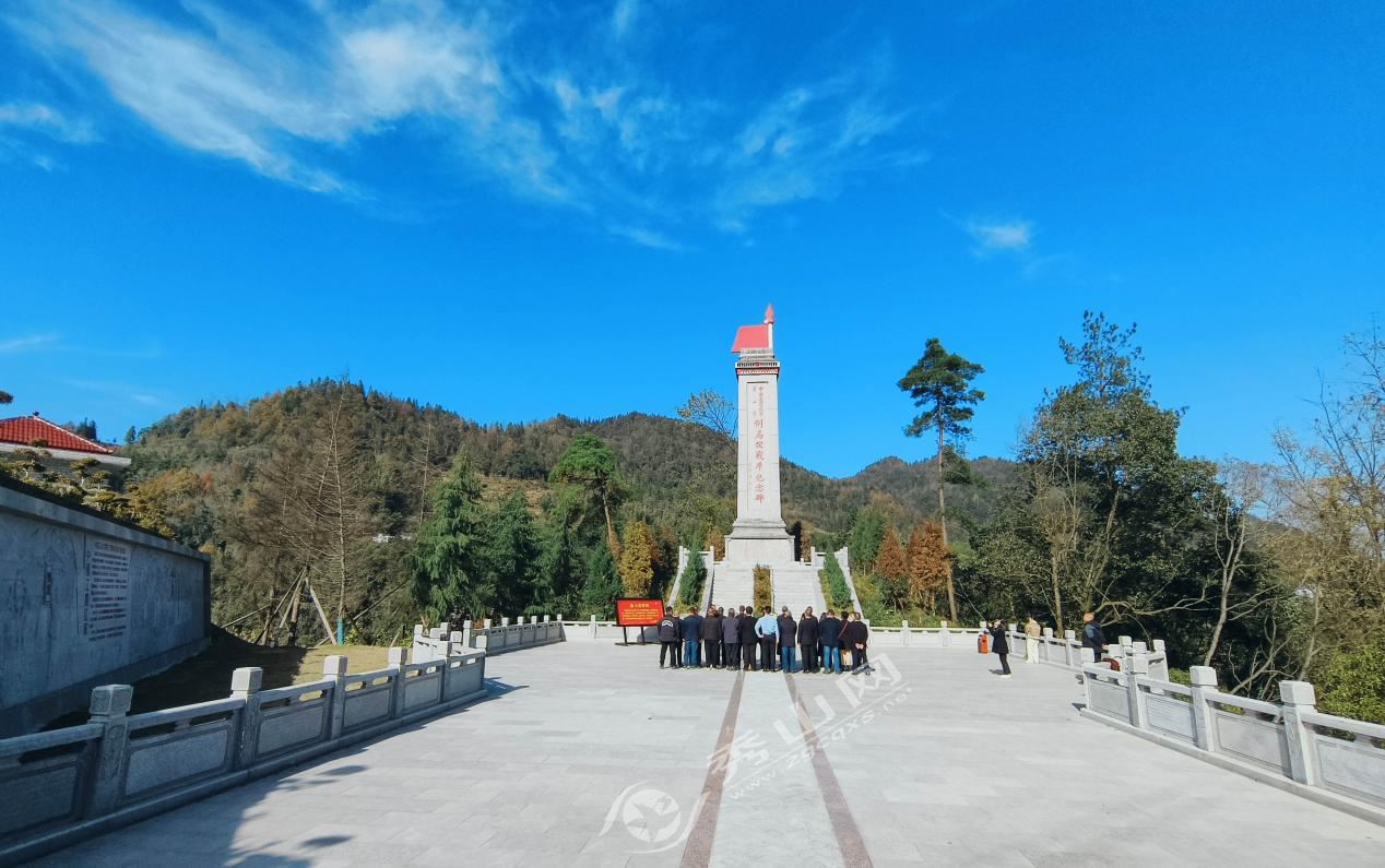 游客到隘口鎮(zhèn)瞻仰紅三軍倒馬坎戰(zhàn)斗紀(jì)念碑。隘口鎮(zhèn)供圖