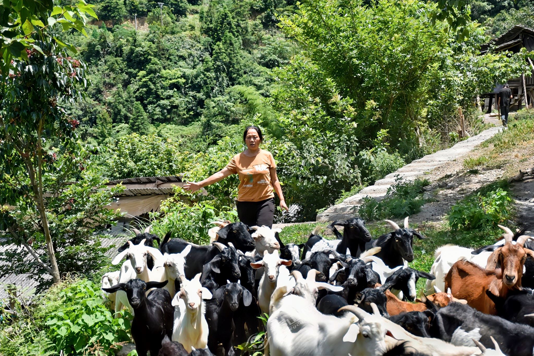 岑龍村新寨組坐落在偏遠的山嶺之上,半山腰的幾間老木房子就是楊玉鳳的家。這里的人祖祖輩輩靠種地而生,日出而作,日落而息。群山環(huán)抱,雜草叢生,為她的養(yǎng)羊事業(yè)提供了得天獨厚的自然條件。但養(yǎng)羊之路并非坦途。養(yǎng)殖初期,對于毫無養(yǎng)殖經(jīng)驗的楊玉鳳來說,無疑是一項巨大的挑戰(zhàn),不但要維護羊舍的安全,還要做好防疫、飼料的加工、成品羊買入和銷售等工作,這些不是用忙和累就能形容的。