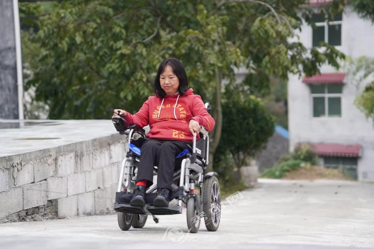 當(dāng)我們驅(qū)車趕到時(shí),楊光裴熱情地招呼我們,給我們指路。她靈活地轉(zhuǎn)動(dòng)輪椅,上坡下坡,引領(lǐng)著我們穿過(guò)鄉(xiāng)間小道,來(lái)到她那溫馨整潔的家。干凈整潔的院子、亮堂的房屋、屋后的養(yǎng)雞場(chǎng)、房頂?shù)姆涿垧B(yǎng)殖,楊光裴把自己的小家打理得井井有條,對(duì)于行動(dòng)不便的她來(lái)說(shuō),這無(wú)疑需要花費(fèi)比常人更多的精力。她對(duì)生活的熱愛(ài)和執(zhí)著,如同一束穿透烏云的光芒,與命運(yùn)對(duì)她施加的無(wú)情重壓形成了鮮明的對(duì)比。