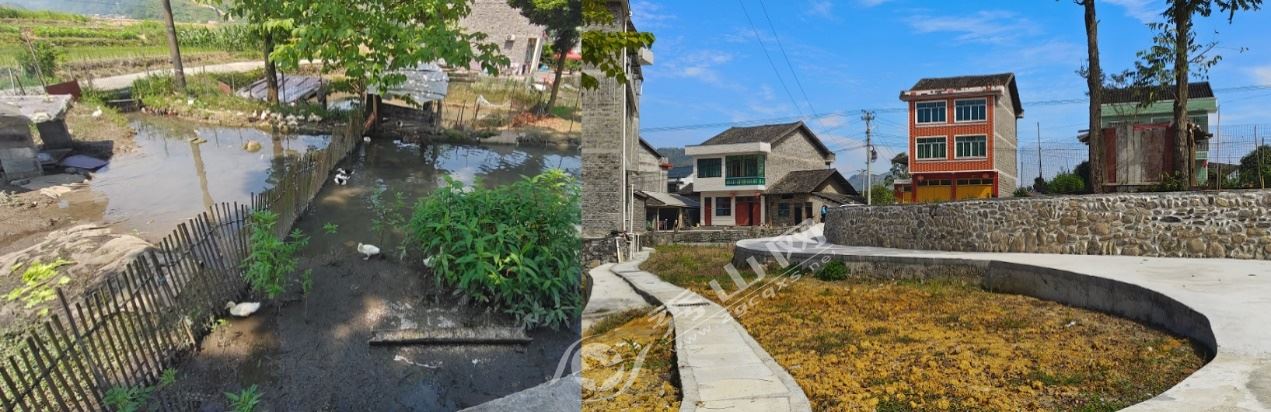 【龍鳳壩鎮整治前(左)、整治后(右)】