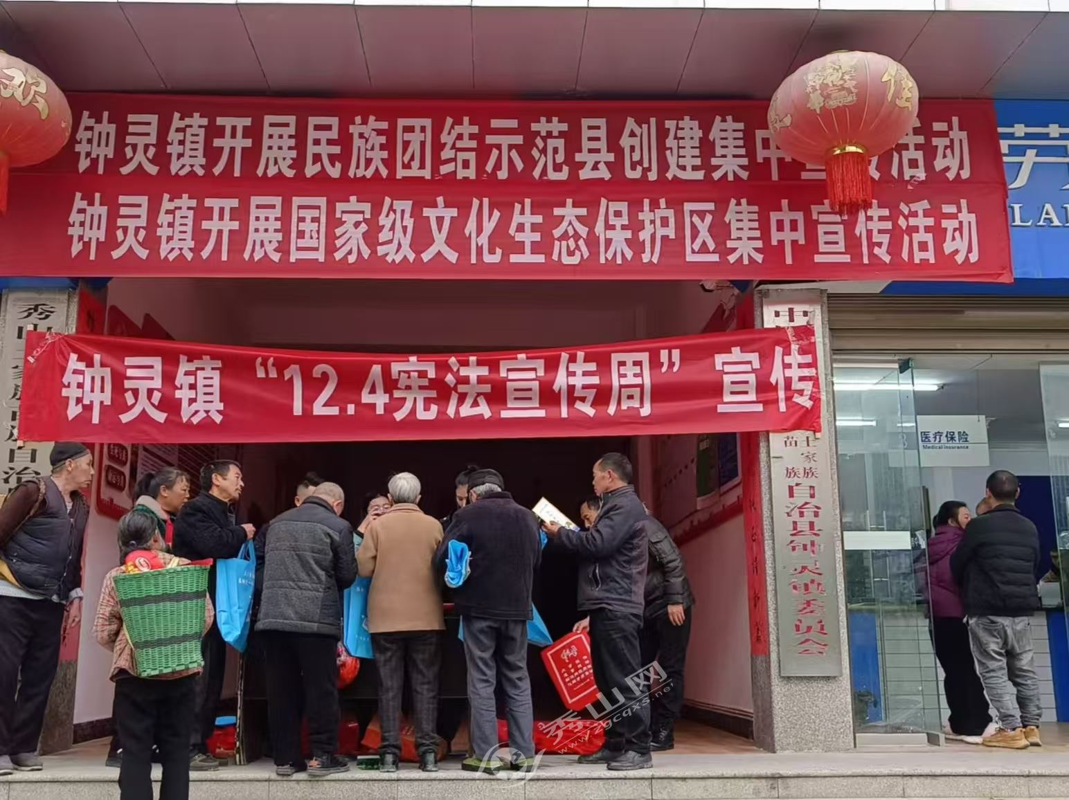 2024年12月4日是我國第11個“國家憲法日”,為進一步弘揚憲法精神,傳播法治理念,樹立憲法權威,營造濃厚的憲法宣傳氛圍,鐘靈司法所聯合鎮政府平安辦、石耶法庭、鐘靈派出所開展集中普法宣傳活動,為群眾送上“法治大餐”。