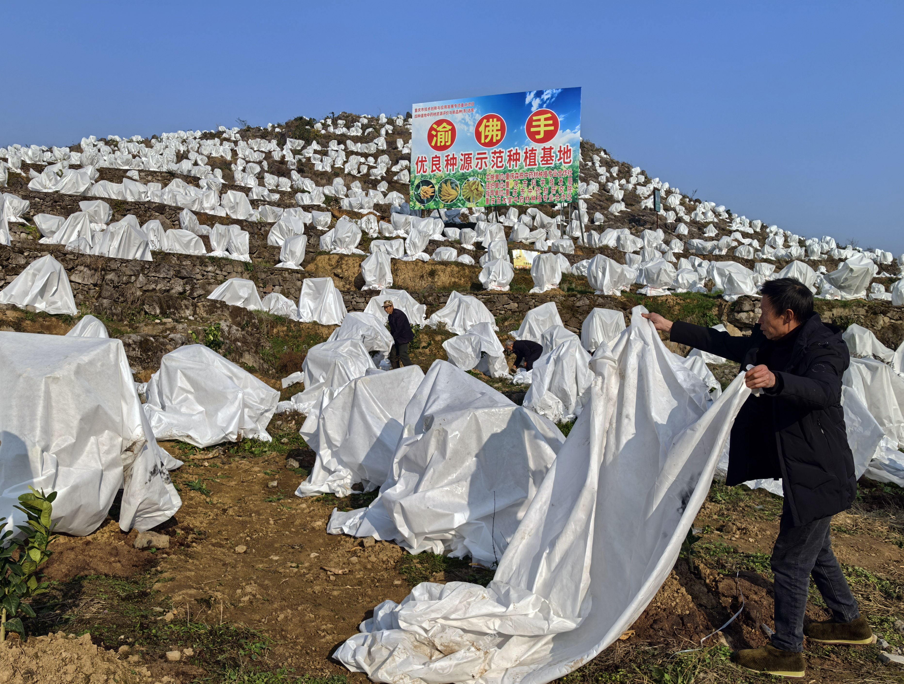據了解,佛手作為一種藥食同源的植物,具有極高的經濟價值和市場前景。果實具有疏肝理氣、和胃止痛、燥濕化痰等功效,在中醫藥領域應用廣泛。冬季的管護關乎到佛手來年的掛果,基地都會采取一系列防寒措施,而覆蓋防寒布就是最為關鍵的一環。明年恰好是“渝佛手”種植的第三年,將迎來掛果期,預計可實現畝產3-4千斤,總產值達到800萬元左右,當地農戶依托基地“租金+務工”的方式,可實現年增收近200萬元。