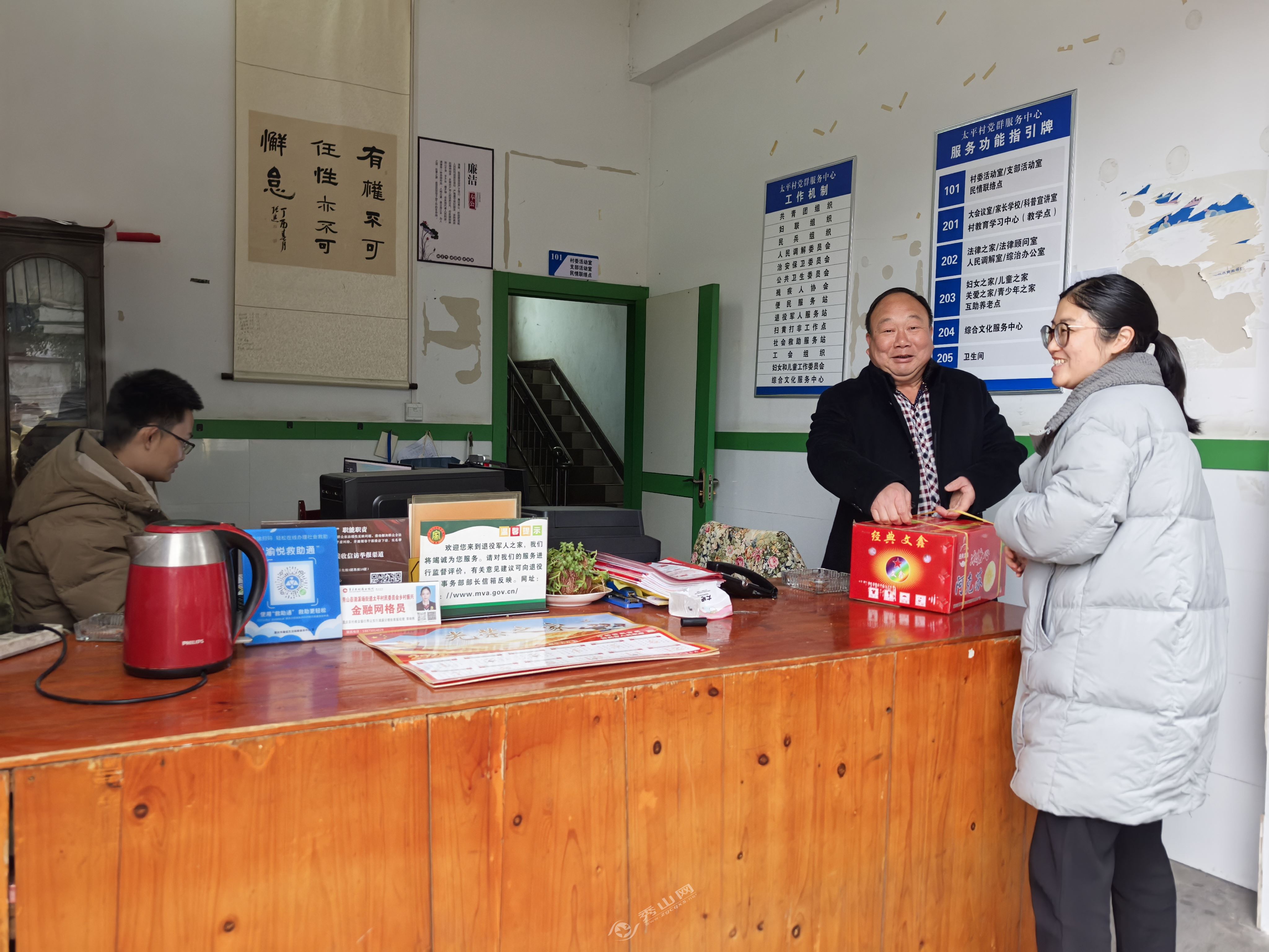在各村(社區)黨群服務中心,慰問組向堅守崗位的基層工作人員致以節日問候,并為他們送上新春慰問品。同時面對面交流探討,詳細了解他們的工作狀況和實際需求,為他們排憂解難。最后叮囑村社干部做好民生保障工作,勉勵大家以飽滿狀態投入新一年工作。