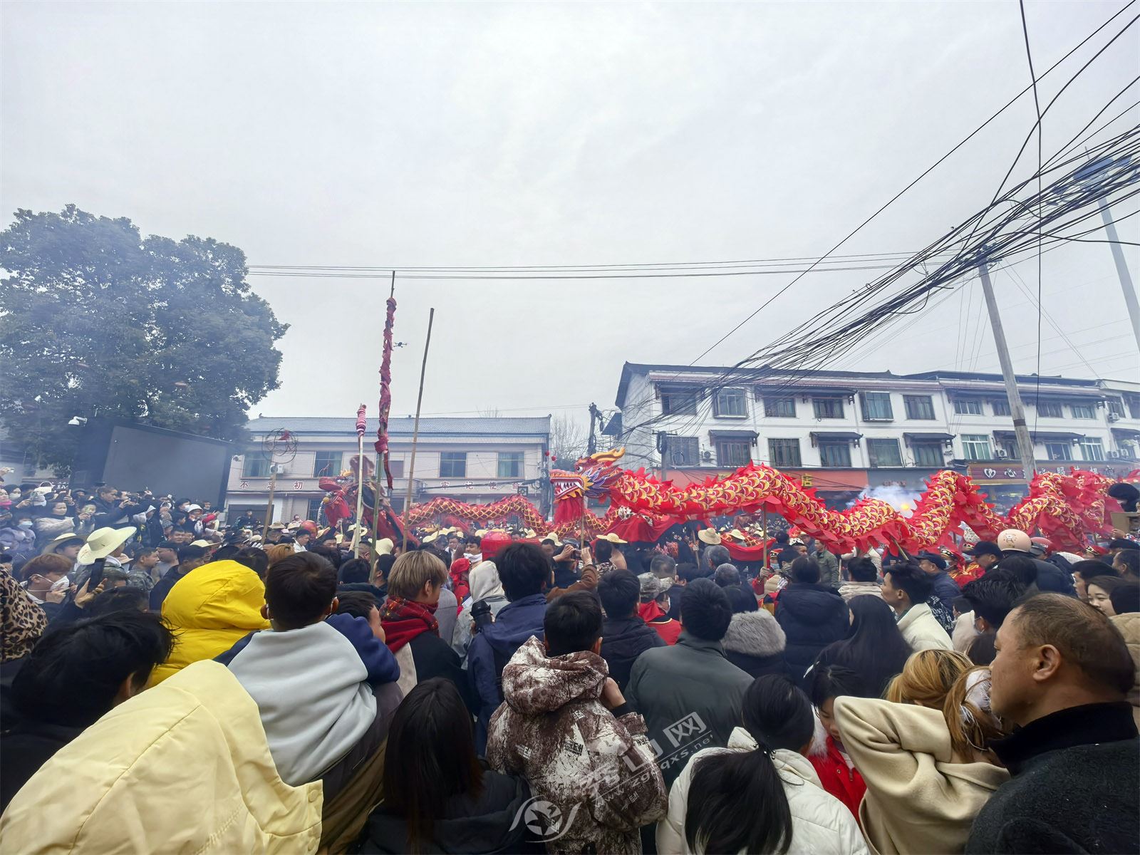 同樣,在蘭橋鎮(zhèn)驚險刺激的“舞龍燈、炸龍燈”巡游表演也讓當(dāng)?shù)厝罕姼惺艿搅藵鉂獾哪晡丁碜援?dāng)?shù)孛耖g的7條“火龍”向集鎮(zhèn)進(jìn)發(fā),進(jìn)行“舞龍燈、炸龍燈”巡游表演,為當(dāng)?shù)鼐用袼腿バ麓鹤8#砬箫L(fēng)調(diào)雨順、平安吉祥。夜幕降臨,炸龍燈巡游表演進(jìn)入高潮,7條火龍一路前行,或上下翻滾、或左右盤旋,居民們點燃鞭炮對準(zhǔn)行進(jìn)的火龍一陣狂轟亂炸,一時間煙花滿天,鞭炮聲不絕于耳,人們在驚險刺激的“炸龍燈”表演中歡度元宵佳節(jié)。