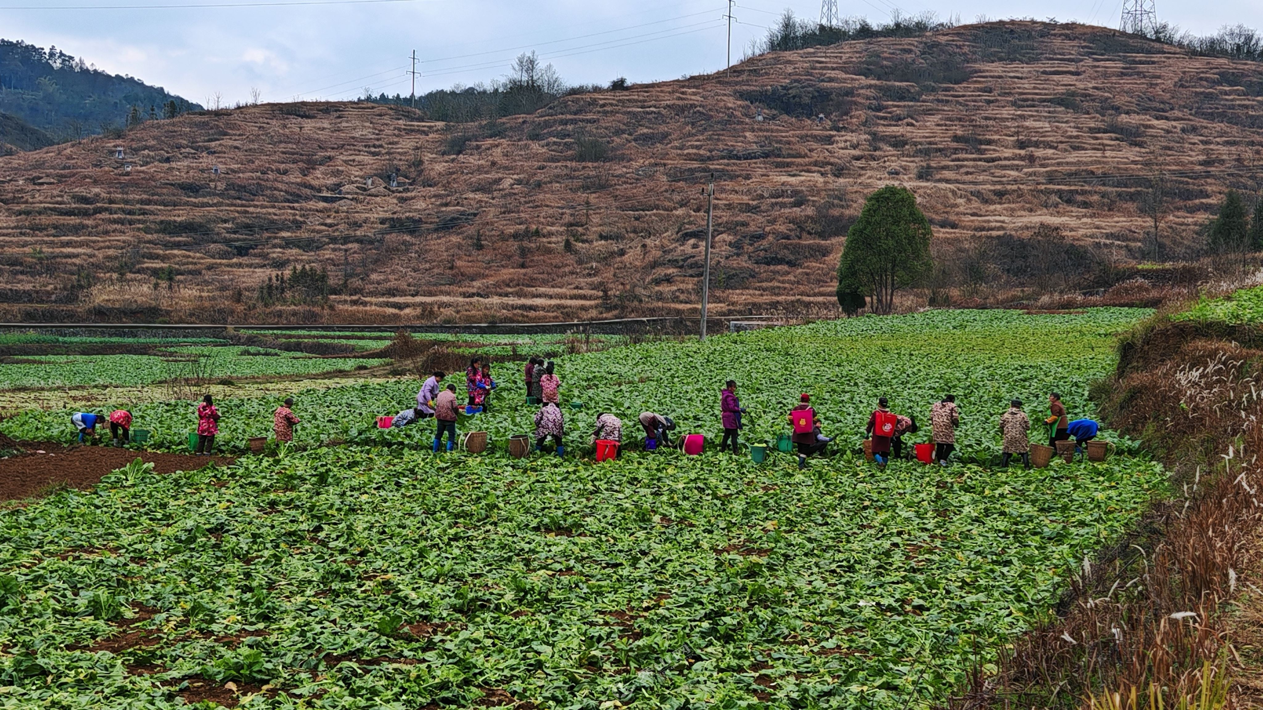 青菜頭迎豐收,鄉村美景別具風味,綠油油的菜地盡收眼底,穿梭在田間地頭的村民如同一個個跳動的音符,奏響了“增收曲”。