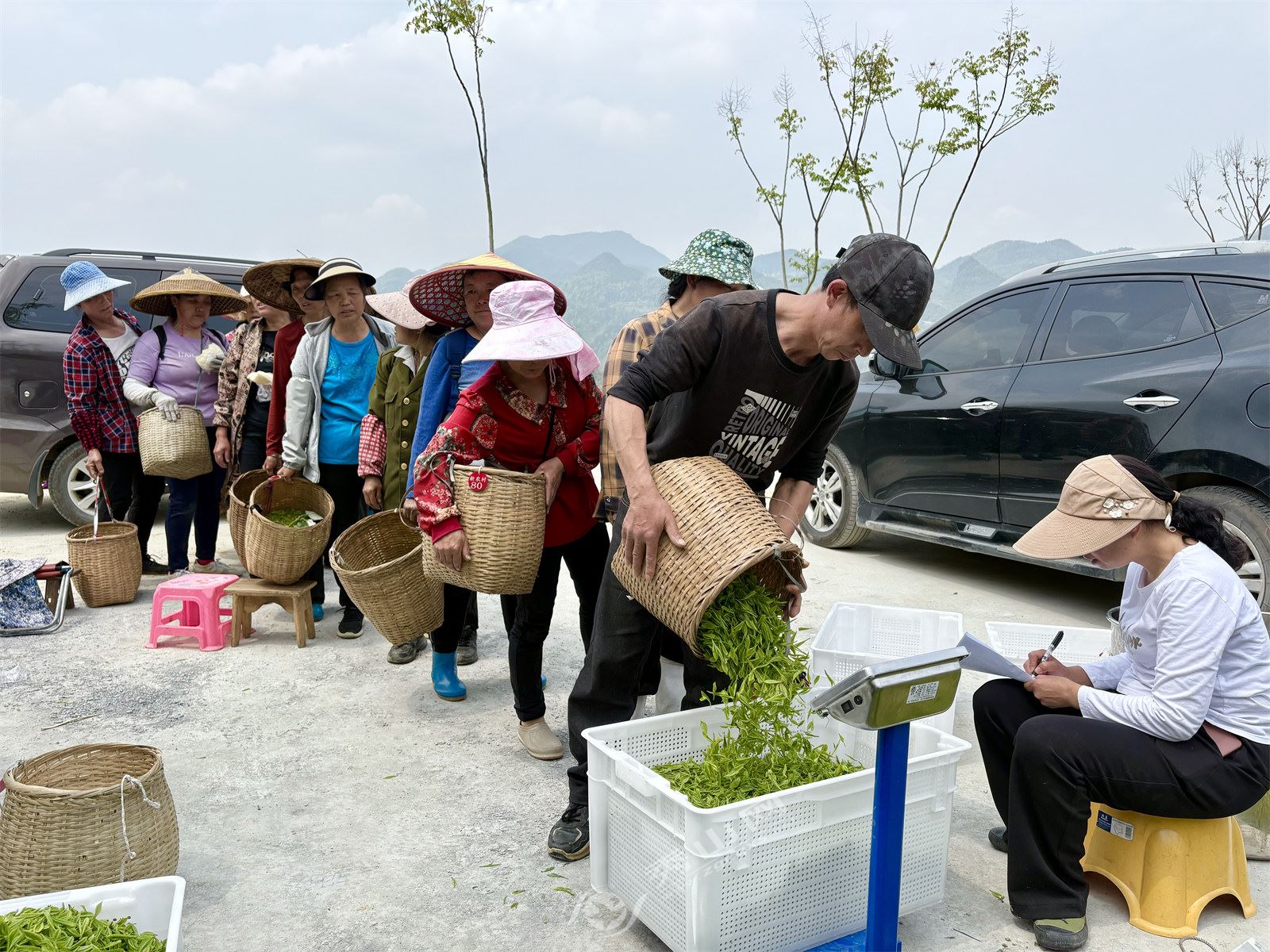 午間時分,新農(nóng)村茶青收購點熱鬧非凡,茶農(nóng)們絡(luò)繹不絕地前來稱重上午的采摘成果,臉上洋溢著豐收的喜悅。基地還貼心地為茶農(nóng)們準(zhǔn)備了免費餐食,讓茶農(nóng)們在忙碌之余感受到溫暖與關(guān)懷。