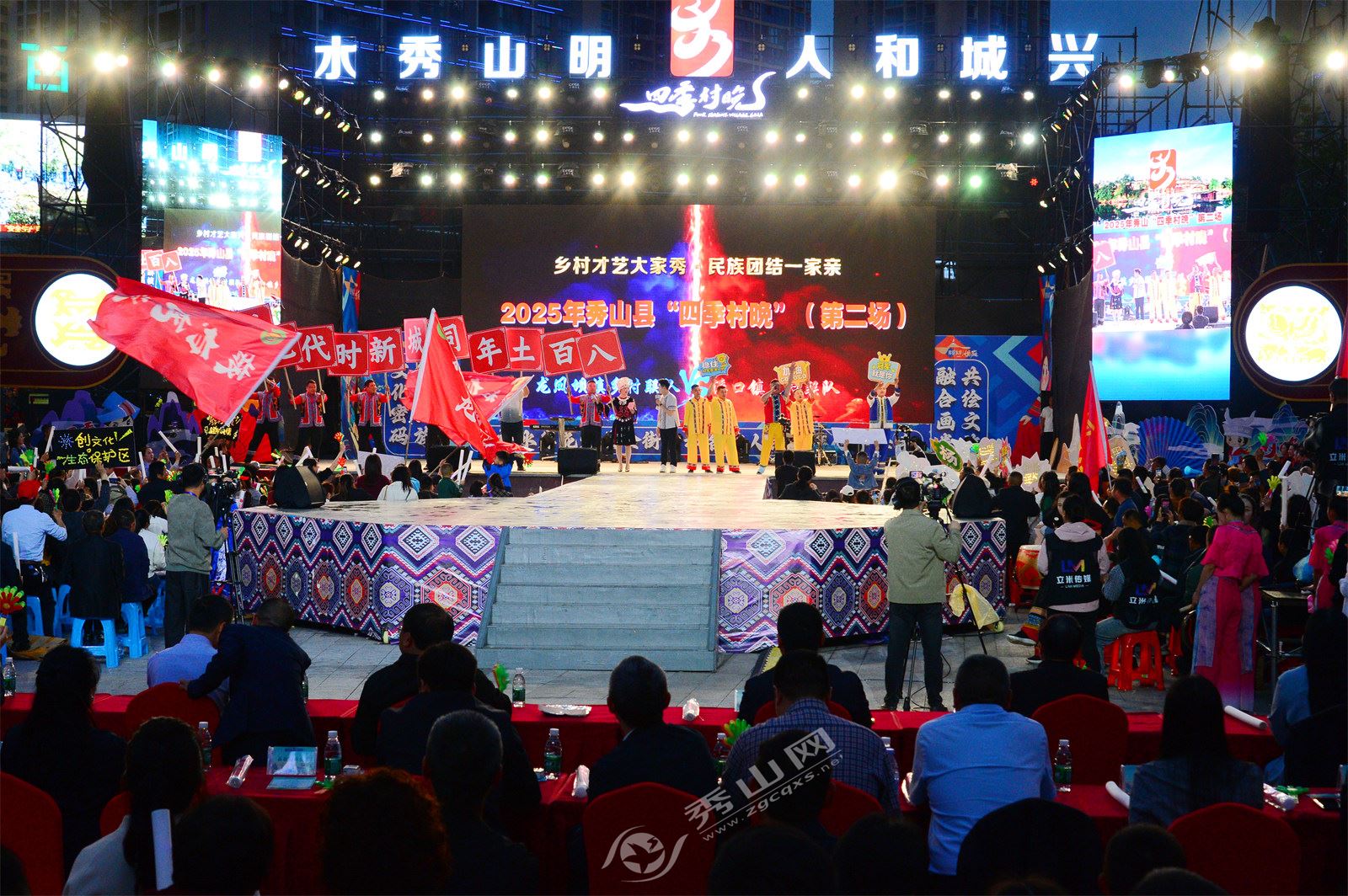 秀山網訊 4月22日晚,我縣2025年“四季村晚”春季第二場群眾文化活動在熱烈的氛圍中圓滿落幕。縣委書記馬文森,縣委副書記、縣長譚雪峰,縣領導代春鵬、林成芳、陳麗萍、楊再慶、徐燕、李明高、曾靜、董秀義到場觀看演出。