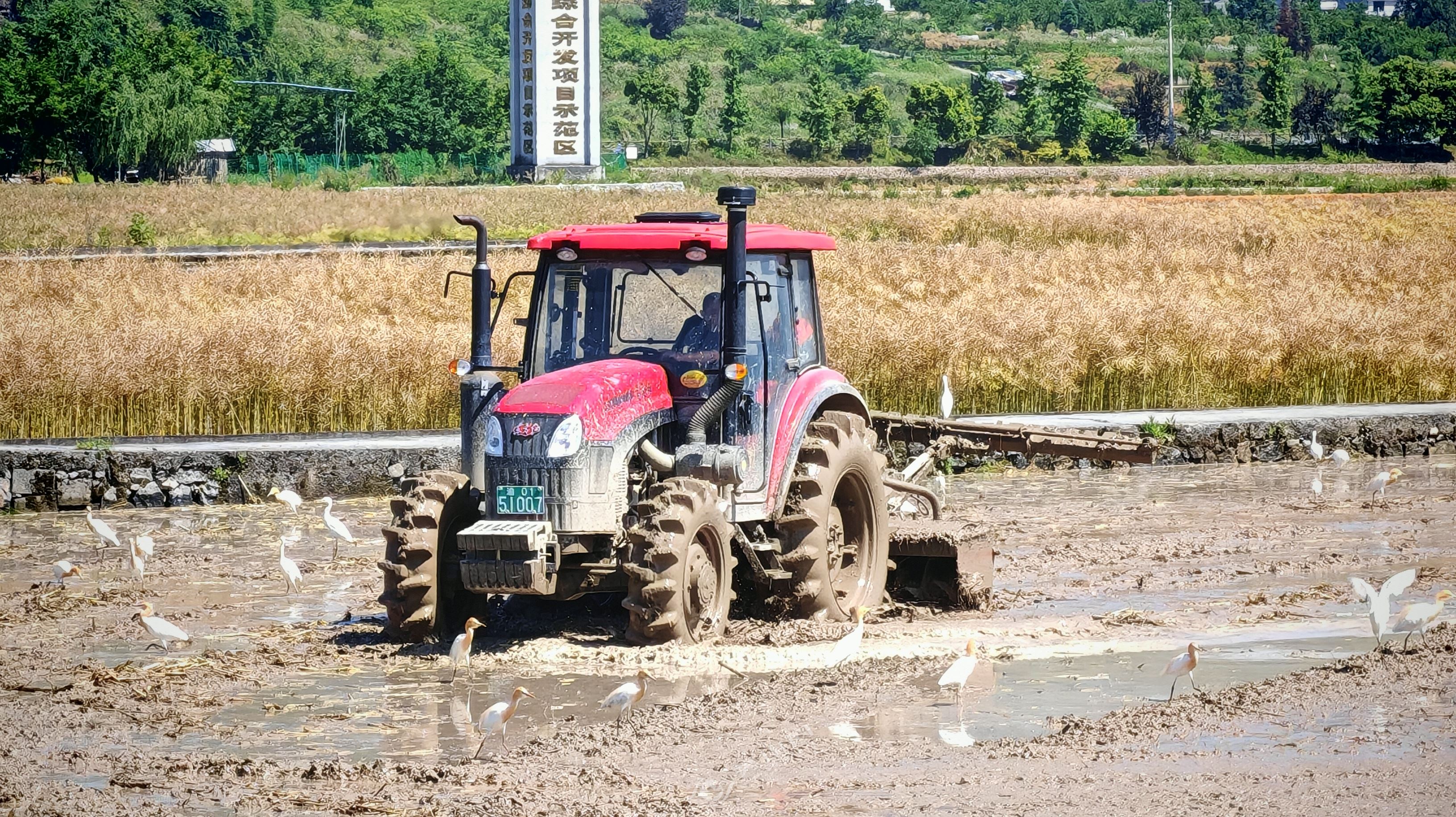 秀山網(wǎng)訊 目前,各地春耕生產(chǎn)正有序展開。5月12日,在清溪場街道萬畝優(yōu)質(zhì)糧油基地,農(nóng)機(jī)手駕駛拖拉機(jī)在農(nóng)田里來回穿梭耕作,轟鳴的農(nóng)機(jī)聲吸引了成群的白鷺從遠(yuǎn)處飛來覓食。白鷺時(shí)而低空盤旋,時(shí)而緊跟作業(yè)的農(nóng)機(jī)覓食昆蟲、泥鰍等,構(gòu)成了一幅人與自然和諧共處的田園生態(tài)畫卷。