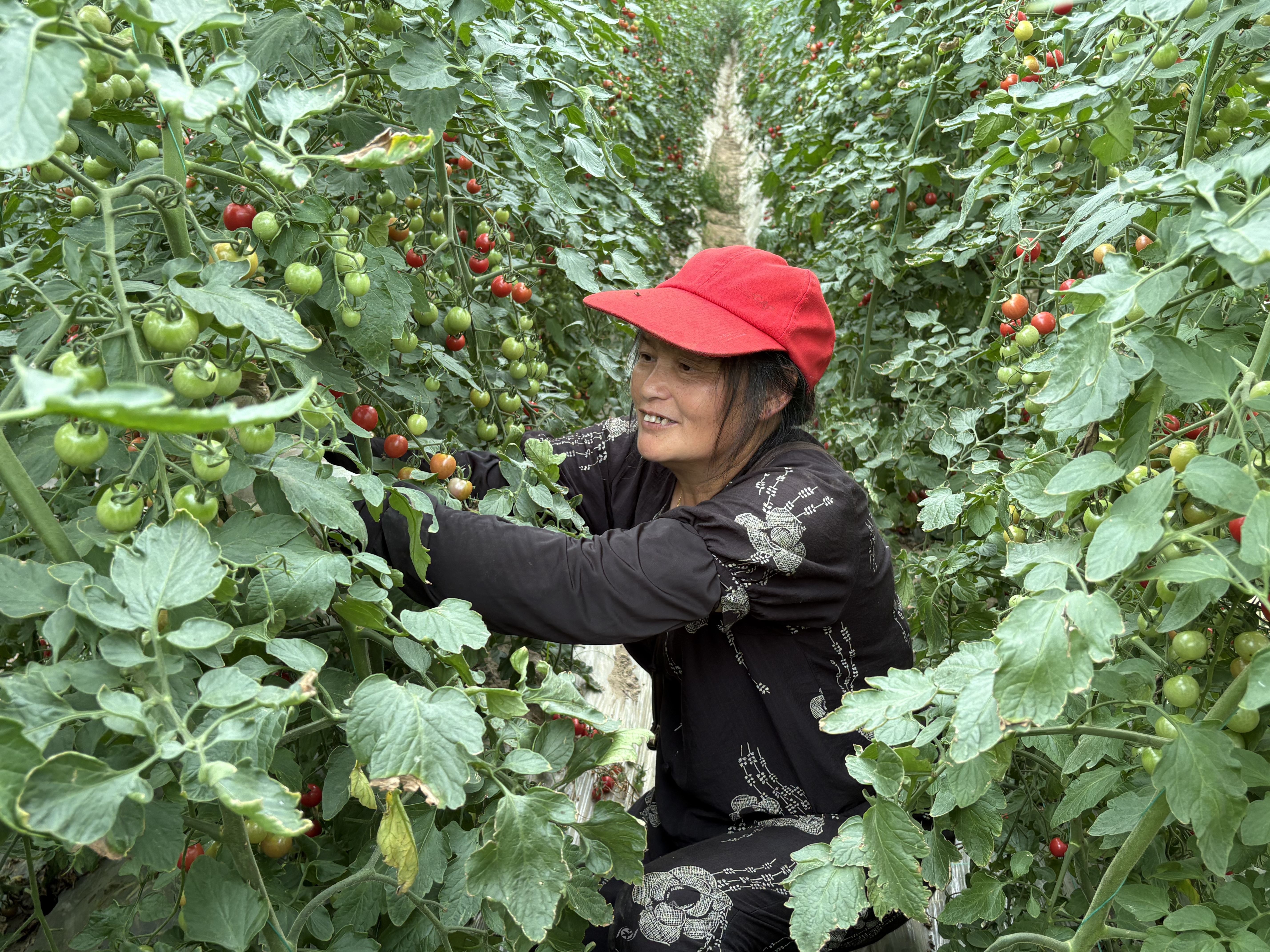 “我在這兒干了三年,離家近,活兒也不累,一年能掙個(gè)七八千塊錢補(bǔ)貼家用。”正在采摘番茄的村民周桂英笑著說。