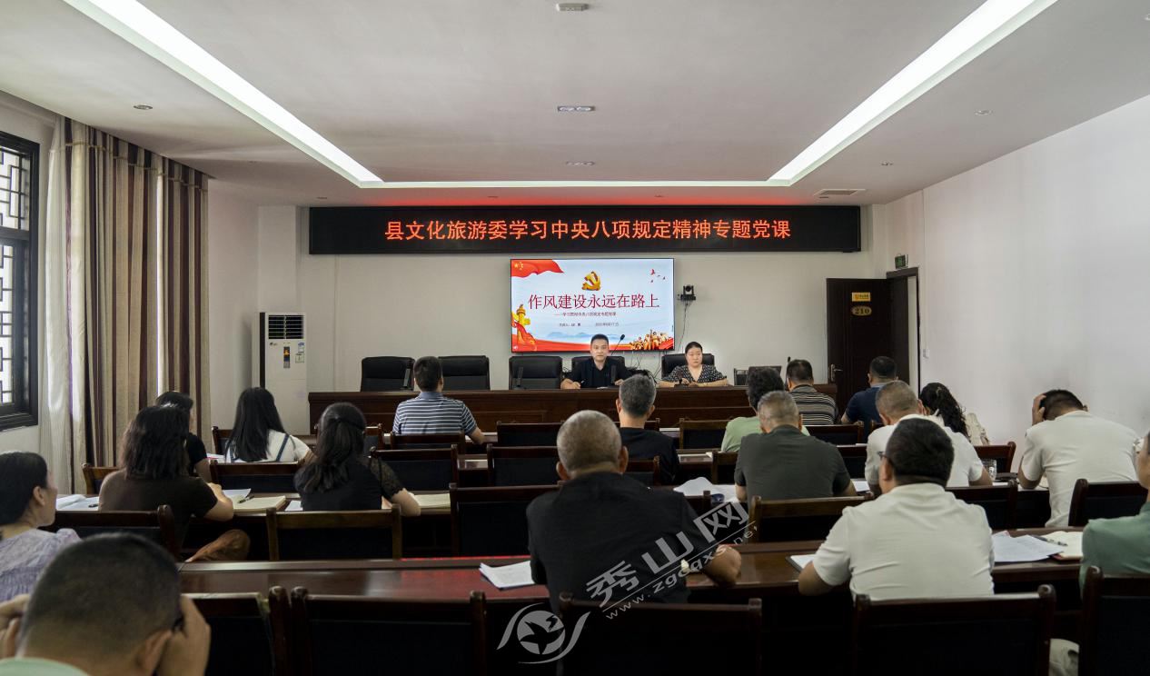 秀山網訊 6月17日,在縣文化旅游委主題黨課上,全體黨員干部深入學習中央八項規定精神,深刻領悟其在推動文旅事業發展中的重要意義。