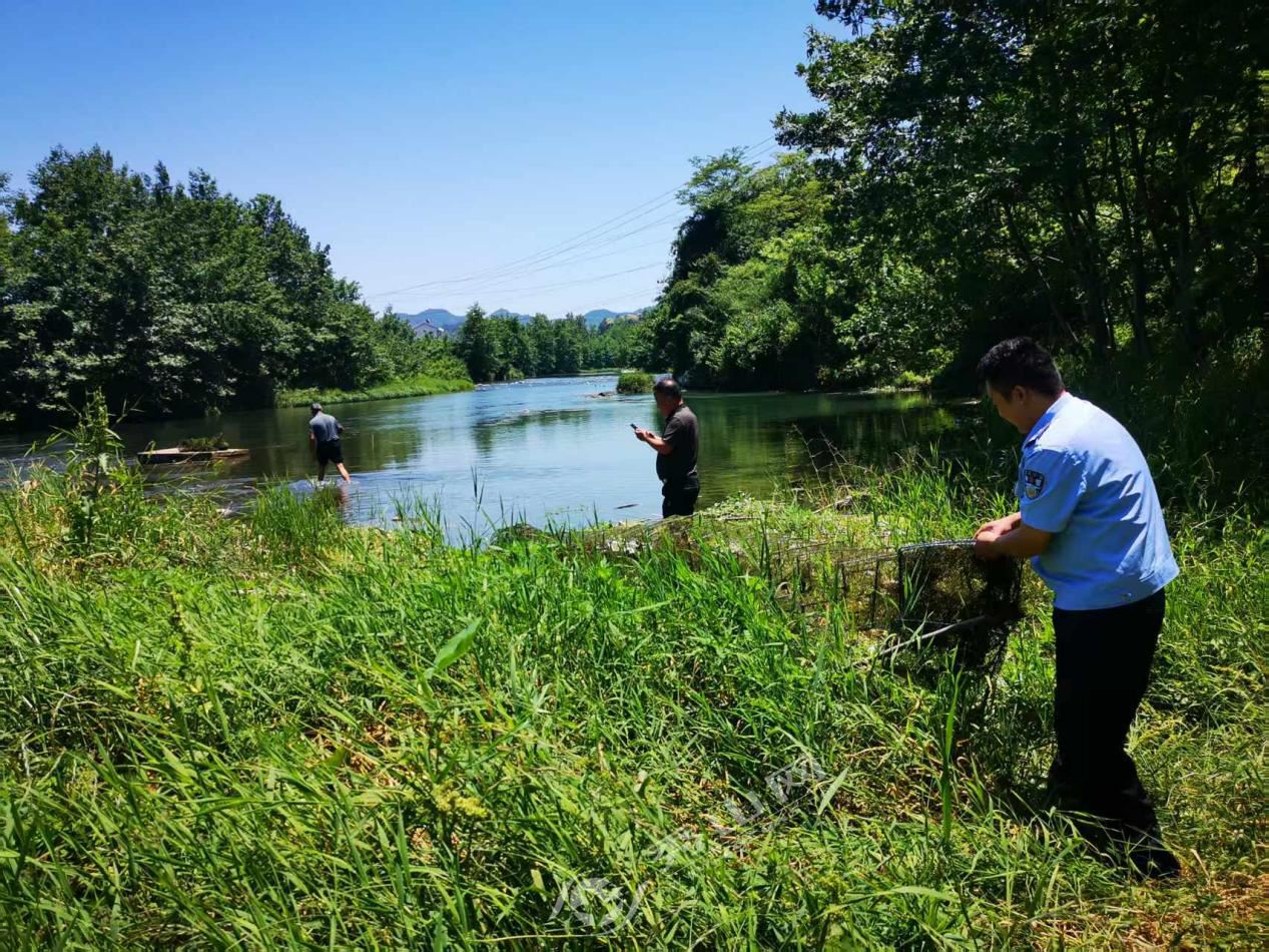 漁政人員清理河道地籠 梅江鎮(zhèn)提供