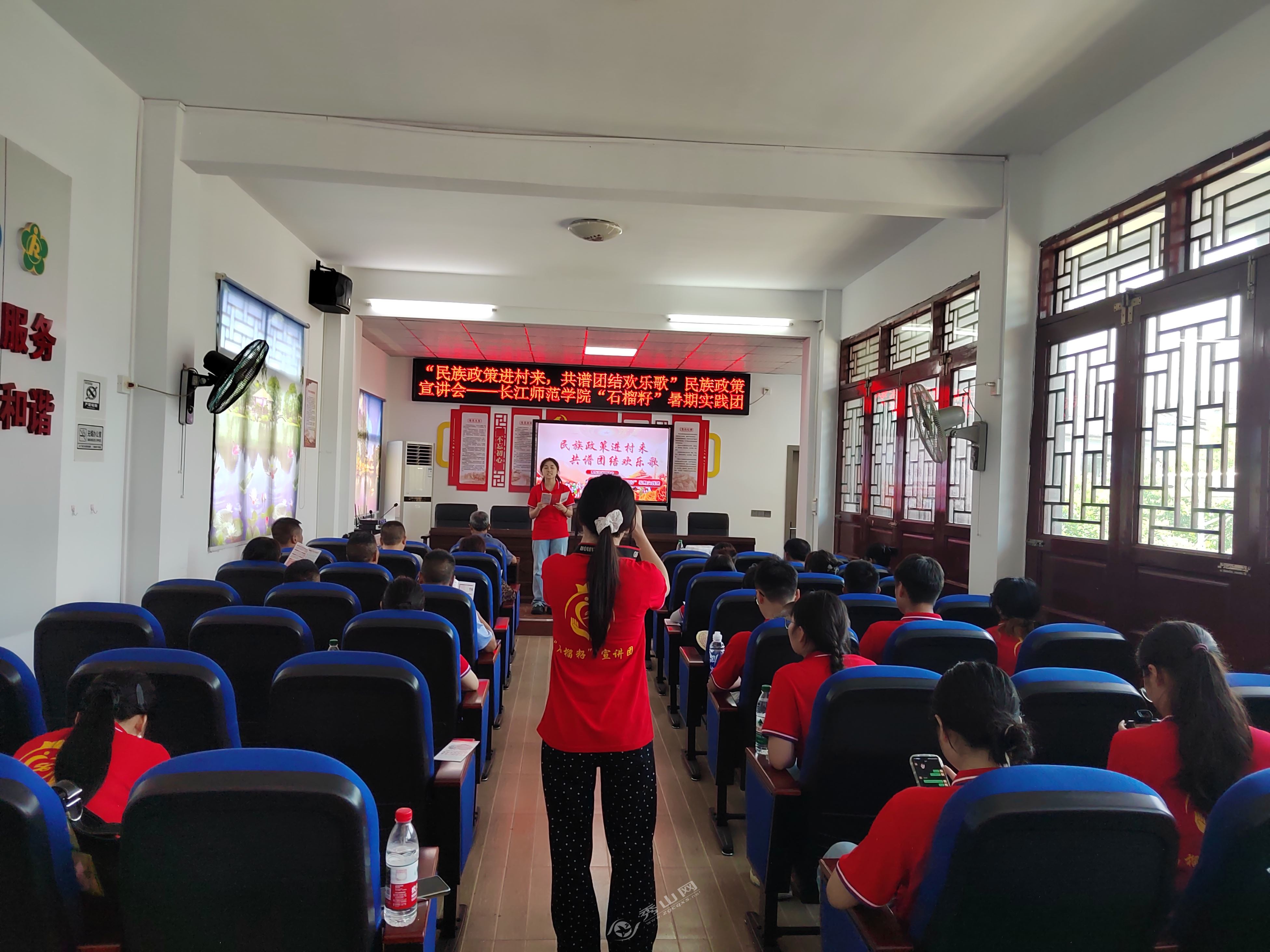 秀山網訊 近日,長江師范學院“石榴籽”暑期實踐團走進清溪場街道永進社區,開展“民族政策進村來·共譜團結歡樂歌”宣講活動。
