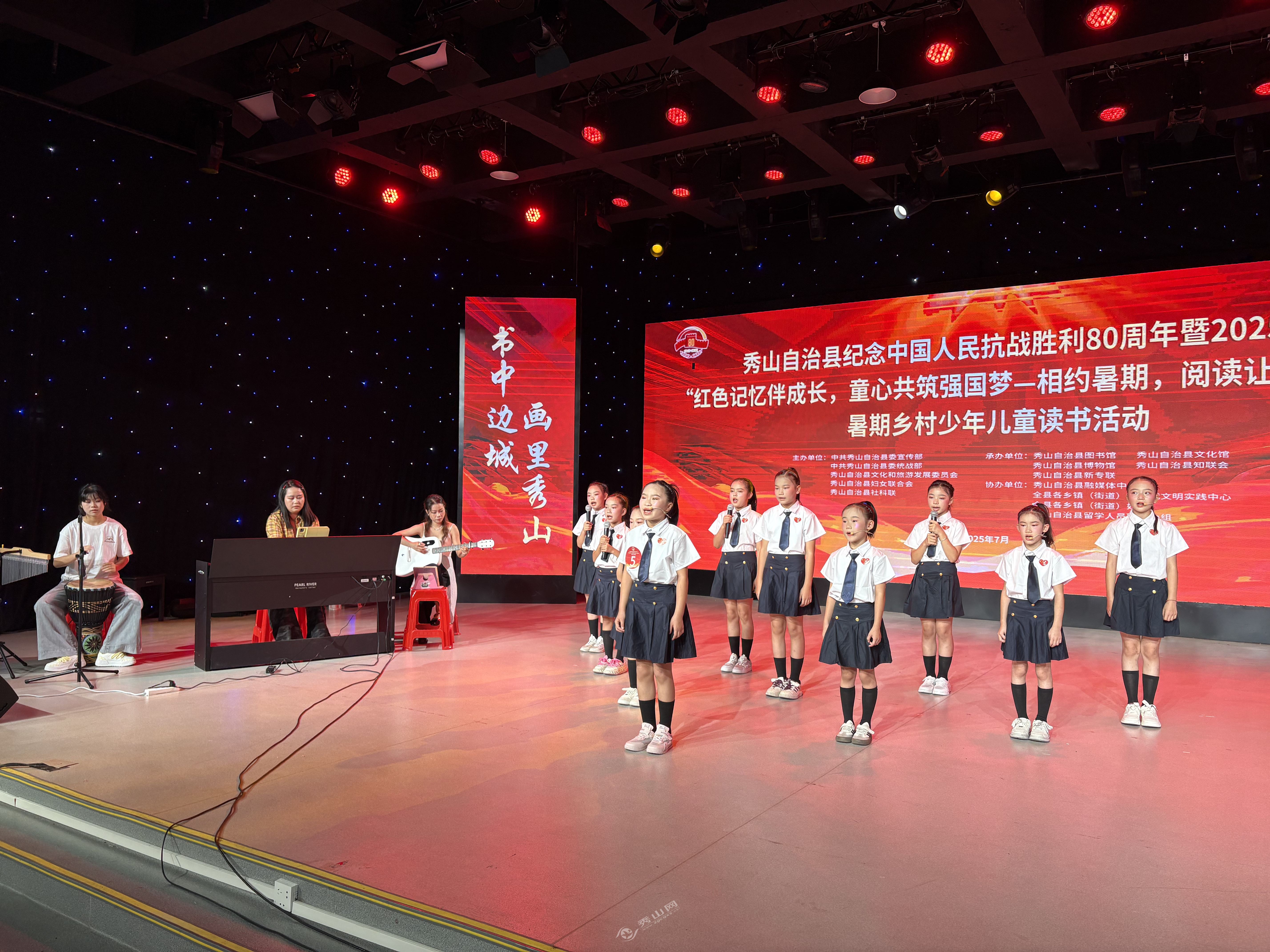 秀山網(wǎng)訊 7月29日,秀山自治縣紀(jì)念中國人民抗日戰(zhàn)爭勝利80周年暨2025年“紅色記憶伴成長,童心共筑強(qiáng)國夢——相約暑期,閱讀讓夢想啟航”暑期鄉(xiāng)村少年兒童讀書活動在縣融媒體中心演播廳舉行。來自中和街道、烏楊街道、平凱街道等12個鄉(xiāng)鎮(zhèn)(街道)的少年兒童用真摯的情感和蓬勃的朝氣,獻(xiàn)上了一場融合歷史回響與時代朝氣的文化盛宴。