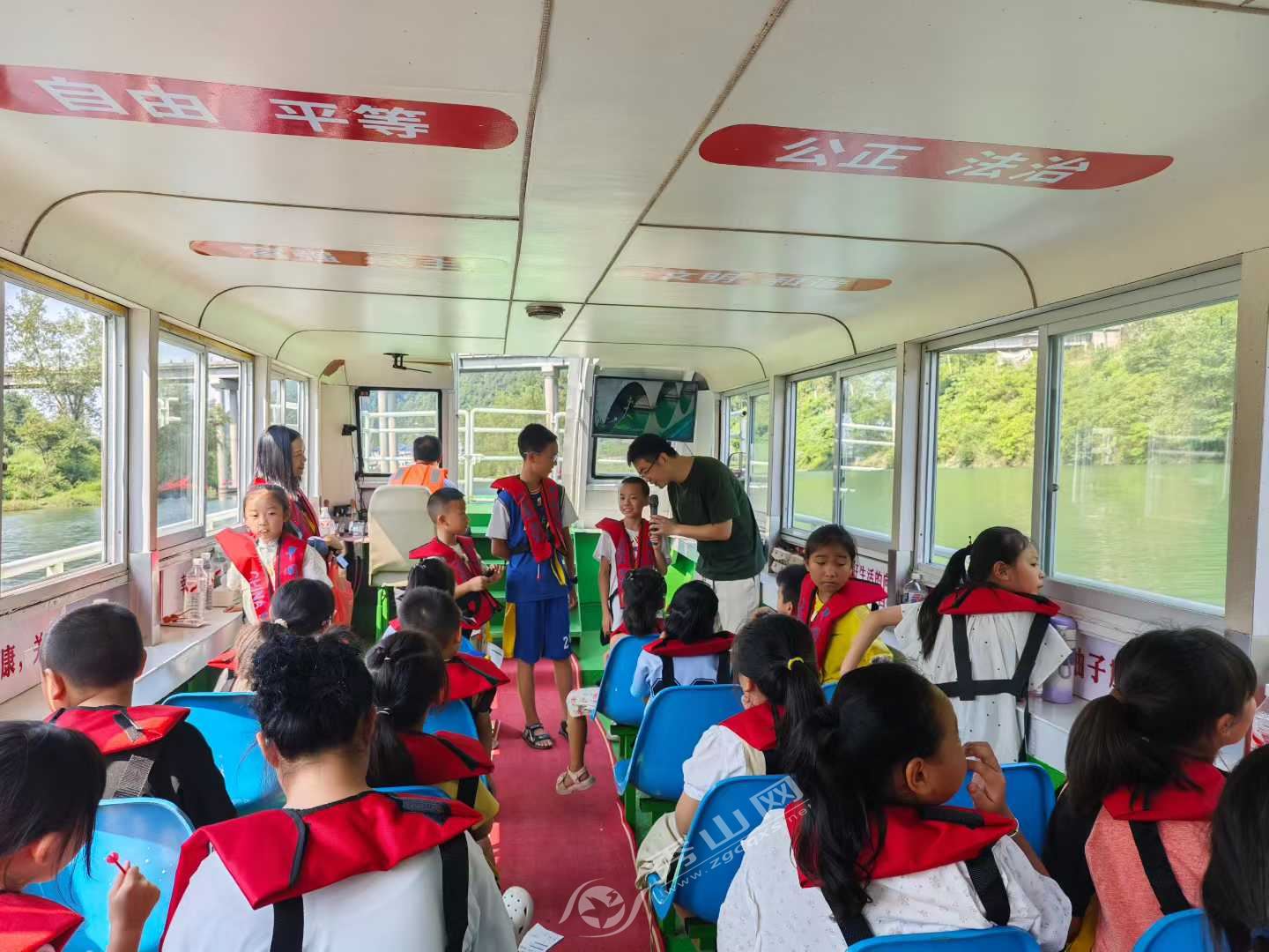 秀山網訊 7月31日,妙泉湖上,一堂別開生面的“行走的思政課”隨船啟航,帶領著28名來自妙泉鎮的青少年兒童開啟了一場凝心鑄魂之旅。