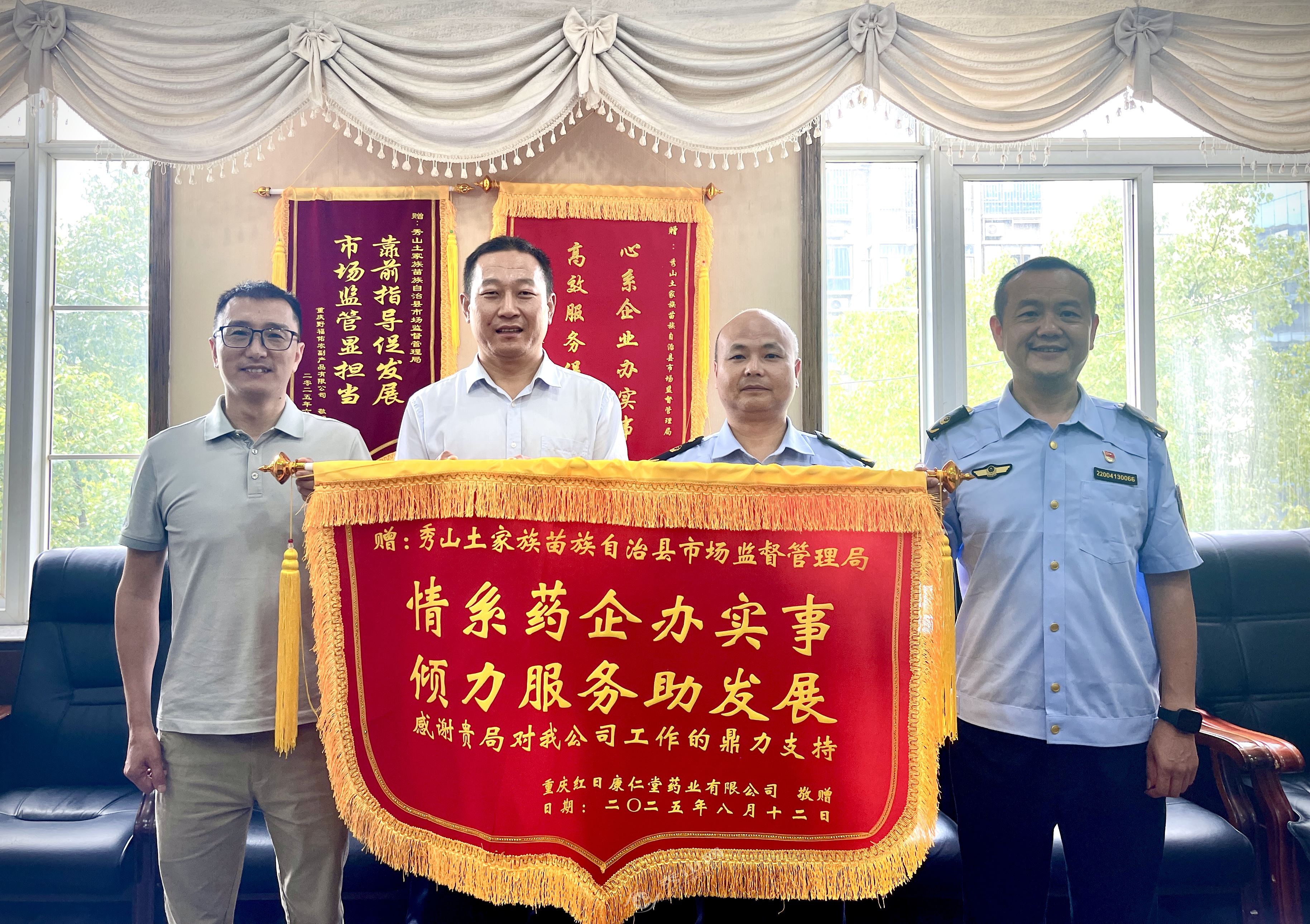 秀山網訊 日前,重慶紅日康仁堂藥業有限公司將一面印有“情系藥業辦實事 傾情服務助發展”的錦旗,送到縣市場監管局工作人員手中,以此表達對該局貼心服務的誠摯謝意。