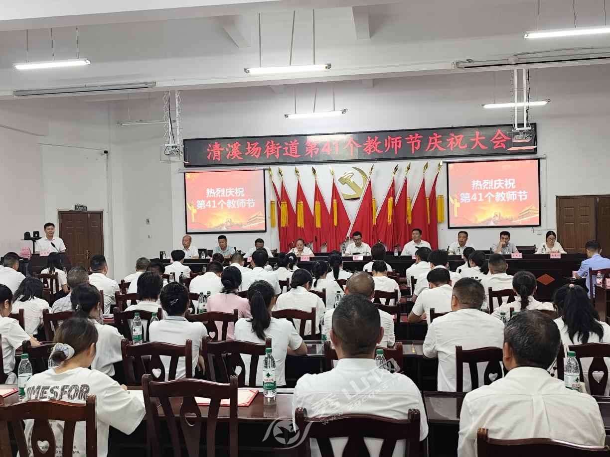 清溪場街道召開第41個教師節慶祝大會,通報清溪場街道教育工作情況,介紹清溪場街道教育方面取得的新進展。會議還宣讀了表彰決定,并為獲獎集體和個人代表頒發榮譽證書。