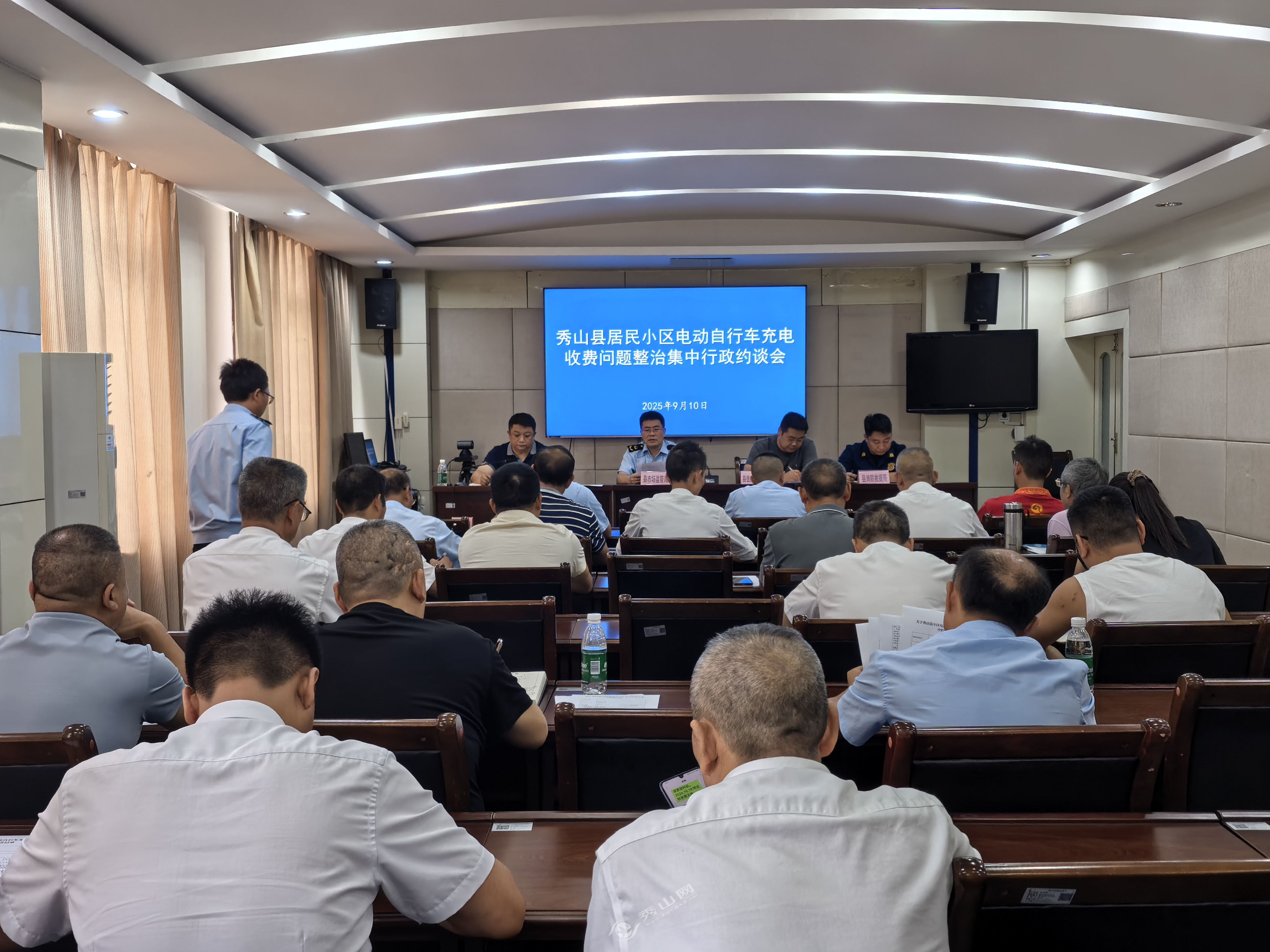 秀山網訊 9月10日,縣市場監管局聯合縣住房城鄉建委、縣消防救援局,召開全縣居民小區電動自行車充電收費專項整治集中行政約談會,20余家充電設施運營企業、小區物業及相關單位負責人參加。
