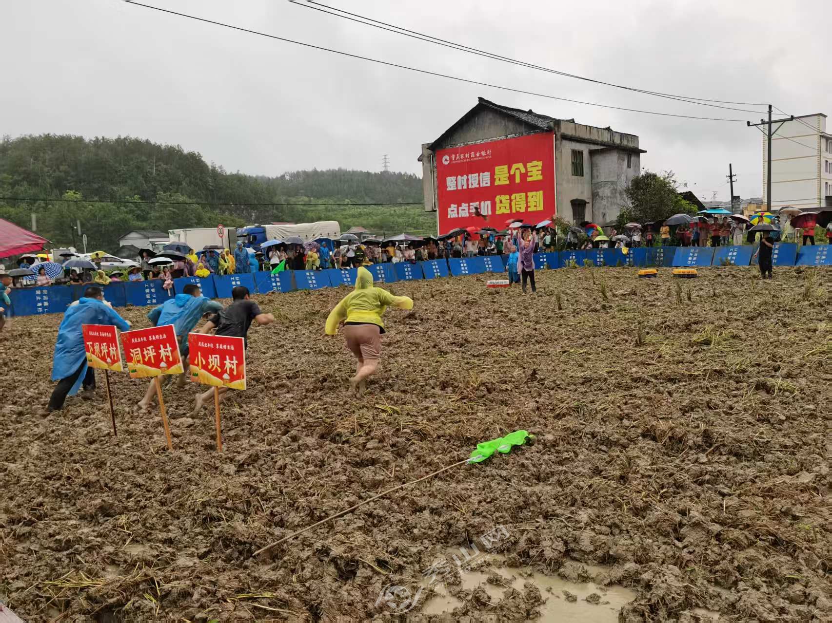 此次活動緊扣“慶農(nóng)業(yè)豐收 享美好生活”主題,將傳統(tǒng)農(nóng)事與趣味競技深度融合。在挑糧食環(huán)節(jié),村民們分工明確、配合默契;“稻田摸魚”環(huán)節(jié)中,現(xiàn)場水花四濺,歡笑聲此起彼伏;抓畜禽環(huán)節(jié),選手們深一腳淺一腳追趕著四處逃竄的小豬和雞鴨,觀眾們也熱情高漲,紛紛為各自支持的隊(duì)伍吶喊助威,充分展現(xiàn)了大家團(tuán)結(jié)協(xié)作的精神風(fēng)貌。活動現(xiàn)場還設(shè)置了徒手剝玉米等特色項(xiàng)目,讓參與者重拾傳統(tǒng)農(nóng)事記憶。