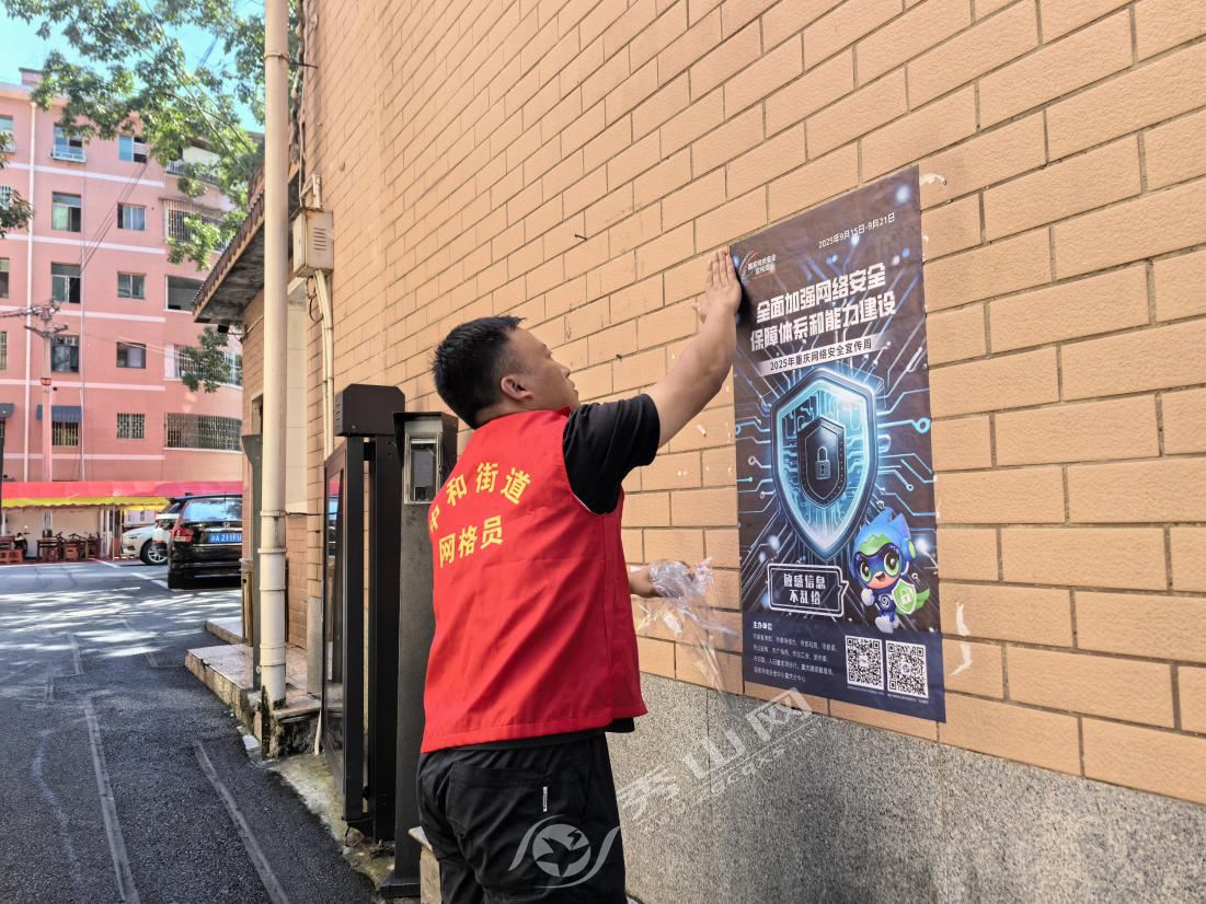線下,在各社區(qū)宣傳欄、小區(qū)出入口、樓道口等醒目位置張貼設(shè)計精美、主題鮮明的網(wǎng)絡(luò)安全宣傳海報。以直觀的形式向居民傳遞反詐防騙、密碼安全、抵制謠言等核心知識,構(gòu)成了社區(qū)內(nèi)一道亮眼的“安全風景線”。