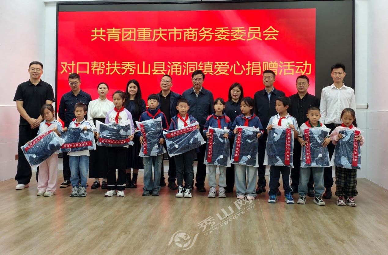 秀山網訊 “少年強,則國強;少年興,則國興!”10月17日,共青團重慶市商務委委員會對口幫扶秀山縣涌洞鎮愛心捐贈活動舉行。