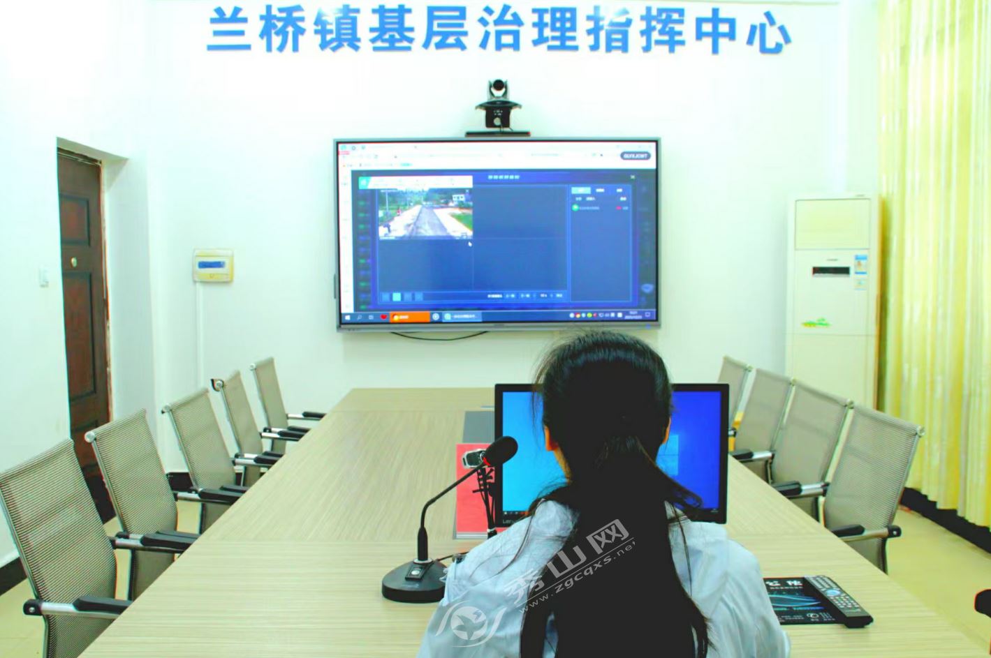 工作人員利用基層智治平臺處理網(wǎng)格員上報(bào)的事件