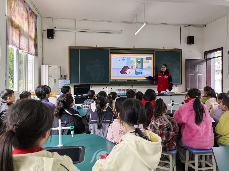 “同學們,你們知道家里的電燈、電視是靠什么‘工作’的嗎?”課堂上,紅巖共產黨員服務隊隊員以提問開場,用卡通動畫短片展示了電的“旅行路線”,瞬間吸引了孩子們的注意力。針對低年級學生認知特點,隊員們用“電流像小火車,電線是軌道,亂摸軌道會‘受傷’”的比喻,講解了插座、電線等用電設備的危險之處,還現(xiàn)場演示了“濕手不碰電器”“發(fā)現(xiàn)電線裸露及時告訴大人”等安全常識。