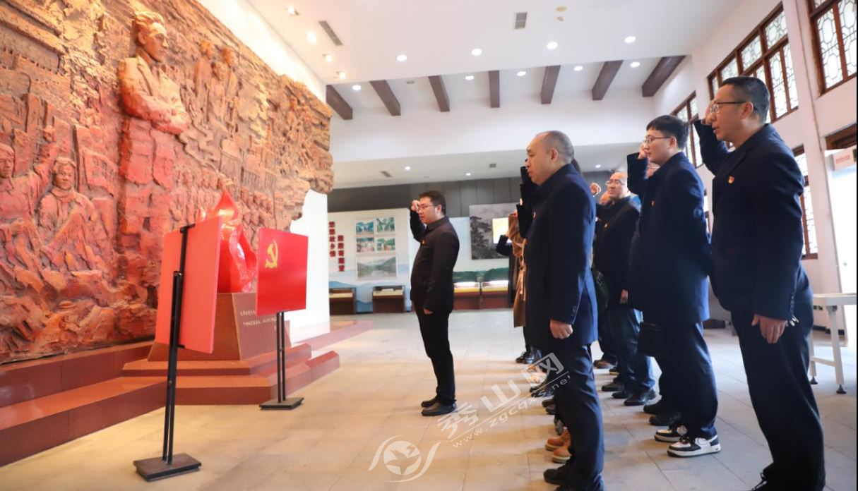 紀念館內,全體黨員高舉右拳,在領誓人的帶領下莊嚴重溫入黨誓詞,進一步強化為黨和人民事業矢志奮斗終身的決心。