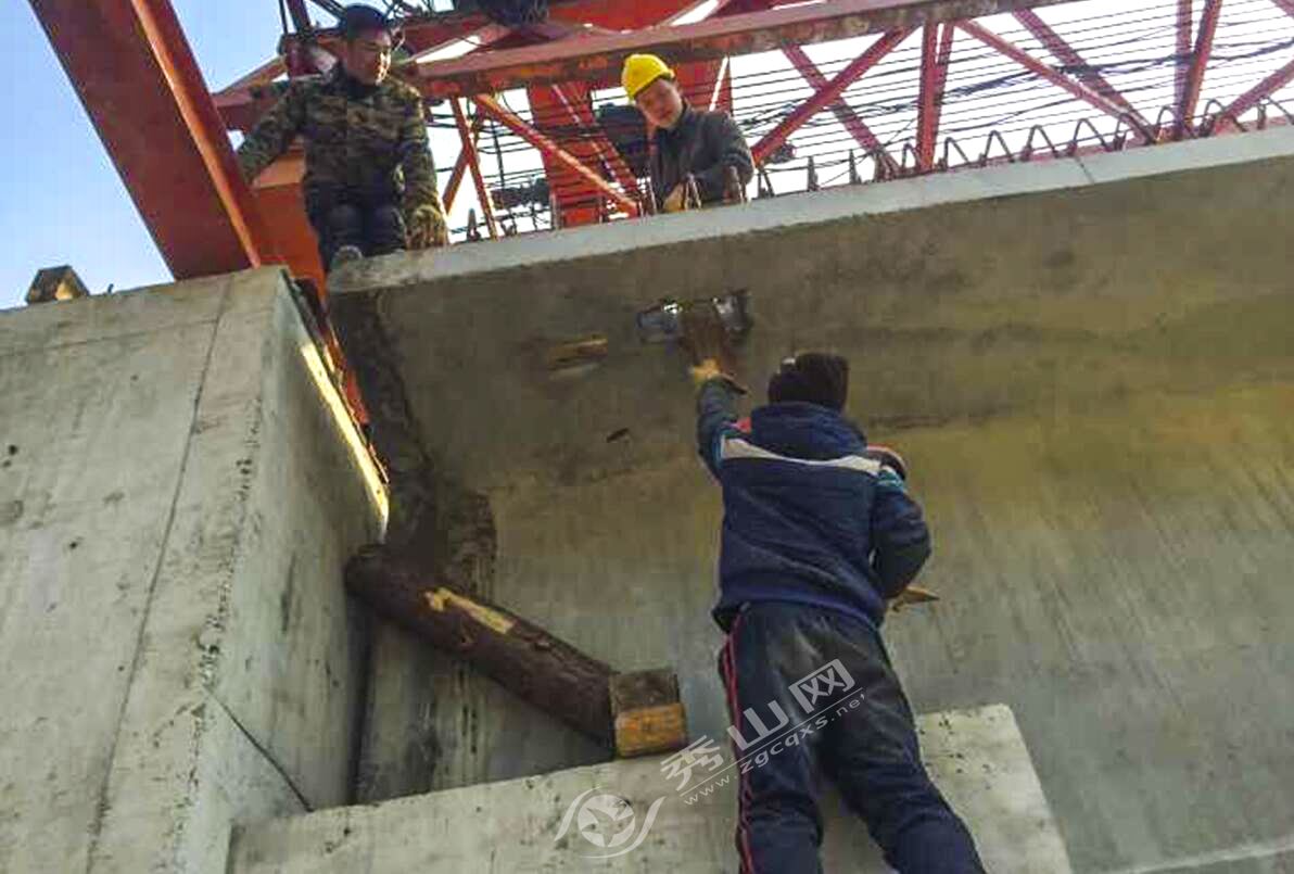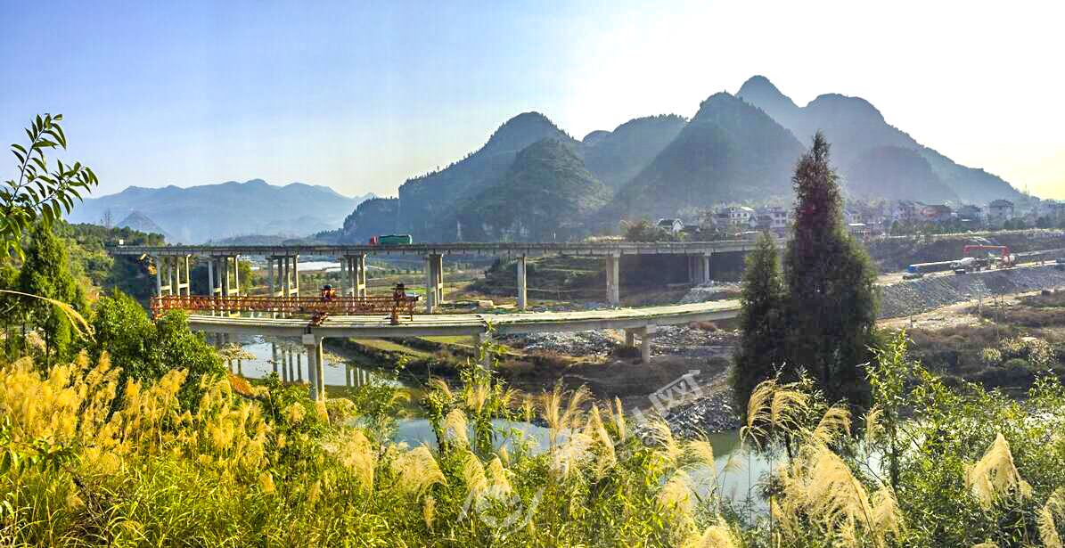 秀山網訊 2月5日下午,筆者在洪安鎮茶洞居委會貴塘組陳家坡走訪,看見修橋技術人員正在安裝橋跨,G242線控制工程洪安河大橋正式合攏。