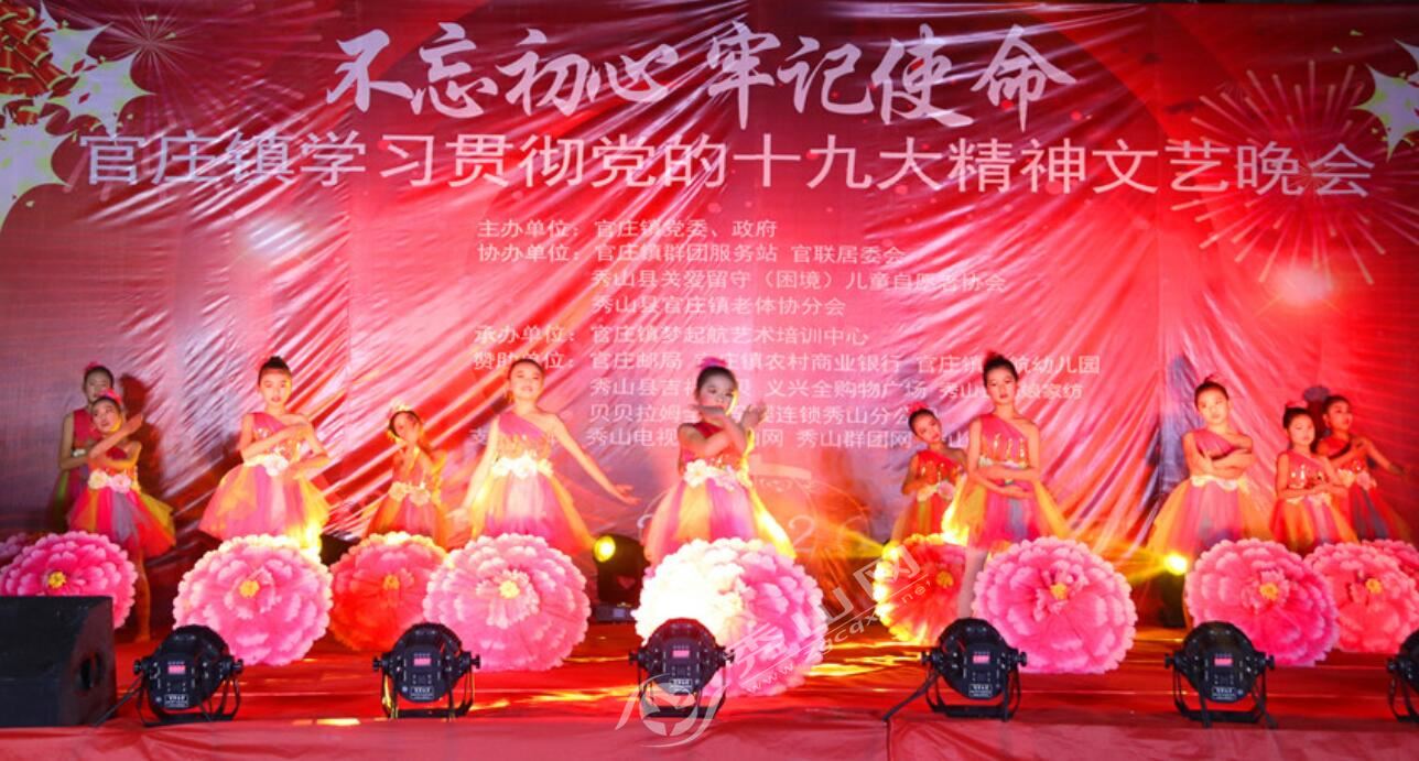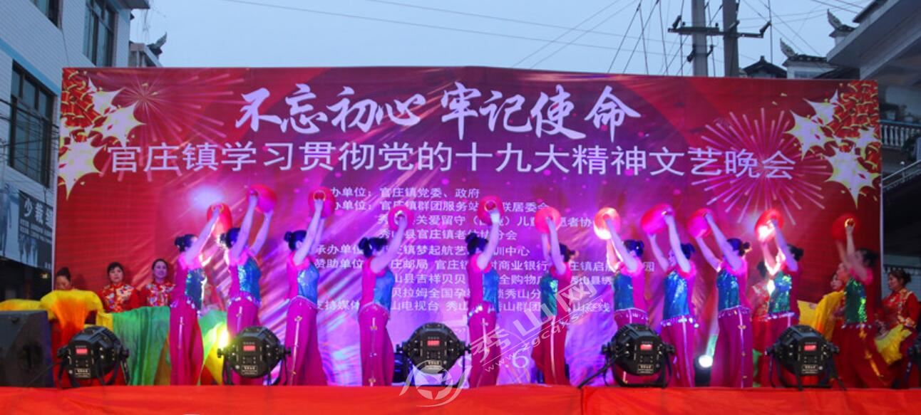 秀山網訊 2月6日晚,官莊鎮舉辦“不忘初心、牢記使命”學習宣傳貫徹黨的十九大精神春節文藝晚會,讓群眾在享受文化大餐的同時學習黨的十九大精神。